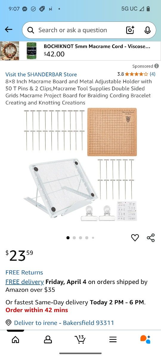 8x8 Inch Macrame Board and Metal Adjustable Holder with 50 T Pins & 2 Clips, Macrame Tool Supplies Double Sided Grids Macrame Project Board for Braidi