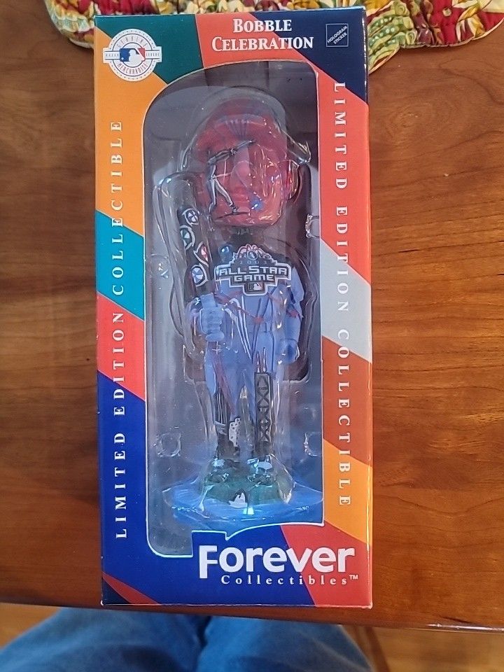 This 2003 All Star Game in Chicago White Sox Bobblehead is a Rare Find for Any Collector. With a Limited Run of only 5000, this MLB Bobbles On Parade Bobblehead is # 924/5000 & is sure to be a prized possession. This is the Chicago White Soxs, 2003 All Star Game "Boobleheads on Parade" and is in new condition in its original mint condition box. This was only removed from box to take photo of the bottom that has the Official Production Number of 924/5000. It's Never been out of its plastic wrapping. "NIB"! I purchased this New in 2003. The perfect addition to any sports memorabilia collection, this bobblehead is a must-have for fans of the game. Whether you display it on a shelf or give it as a gift, this collectible piece is sure to be a conversation starter. Don't miss out on the opportunity to own this rare and unique find.