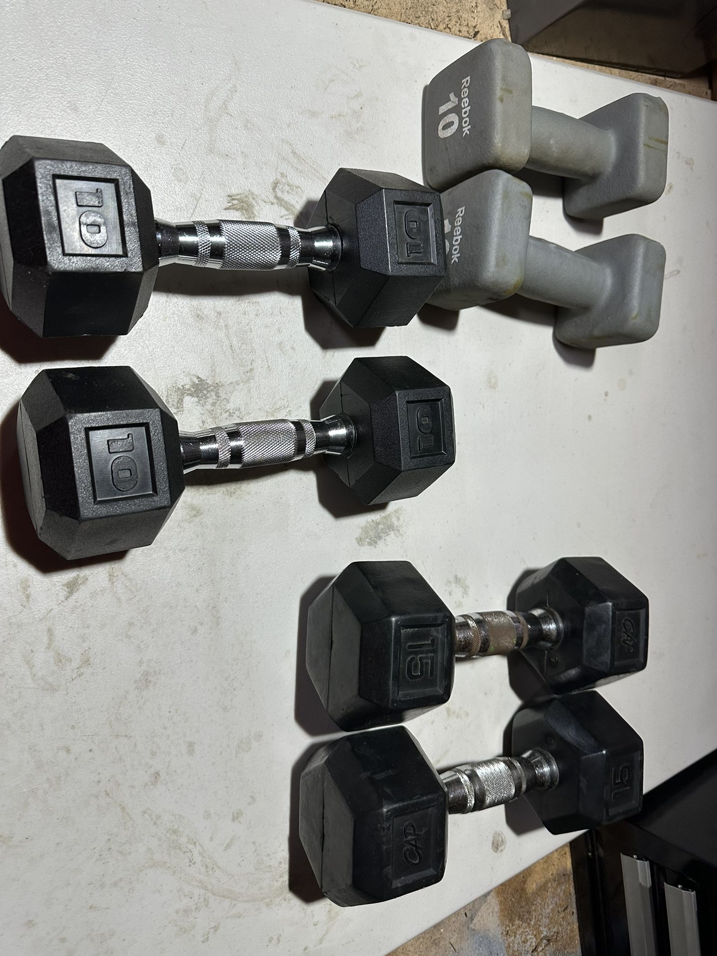 3 sets of Dumbells 10 - pounds, 10 - pounds, 15 - pounds Must take all