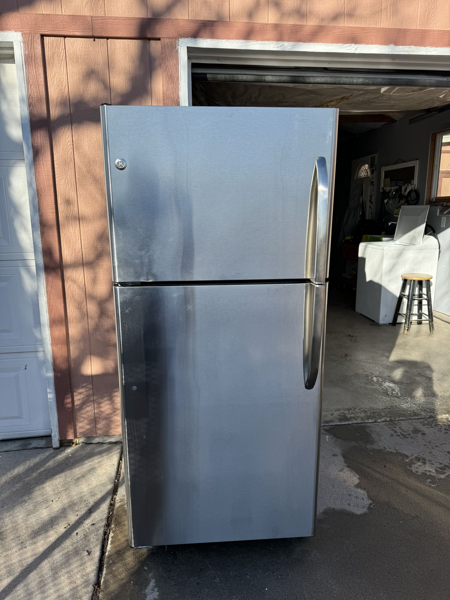 This is a G E. Top freezer fridge with ice maker 18 cuft capacity working great in good condition. Free delivery same day and warranty works