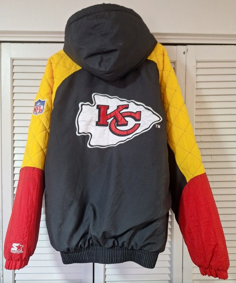 Experience the nostalgia of this vintage Kansas City Chiefs Starter Puffer full zip coat while staying warm! This thing is absolutely gorgeous, and in excellent condition. I have too many coats and thats the only reason I'm selling. Kept clean and in a smoke/pet free environment. Side pockets and also inner pocket as well as Starter zipper works great. Stunning and vibrant coat. Please see photos for closer details, thanks for looking!
