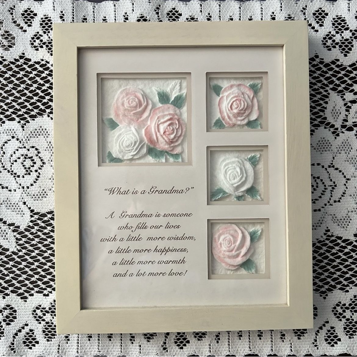 *Use #wrayclark in the search bar to browse my closet using filters! Xposted No Holds. Please read item description. Local pick up available :) GUC! a framed shadowbox plaque with the following message about grandmas: Question: "What is a Grandma?" Answer: "A Grandma is someone who fills our lives with a little more wisdom, a little more happiness, a little more warmth and a lot more love!" The plaque also features several embedded 3D embossed pink and white roses. Approximate measurements 9”x11”. Can be hung on the wall or displayed on a tabletop, shelf, or bookcase. Clean smoke free home. Plaque shadowbox embossed wall art framed art grandmother mother’s day birthday appreciation cottage cottagecore