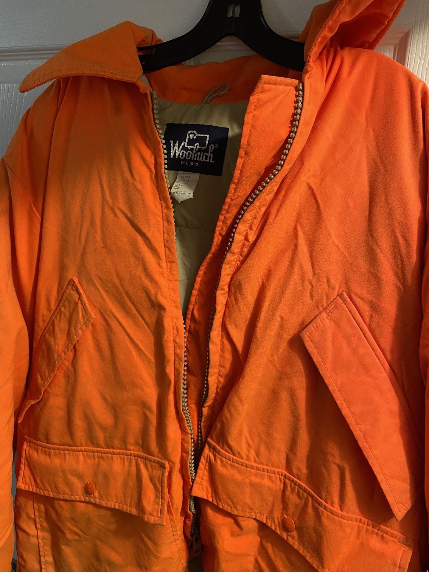 Men’s jacket orange xL woolnich reversible .Has big pouch in the back needs cleaning $20 PharrTexas78577