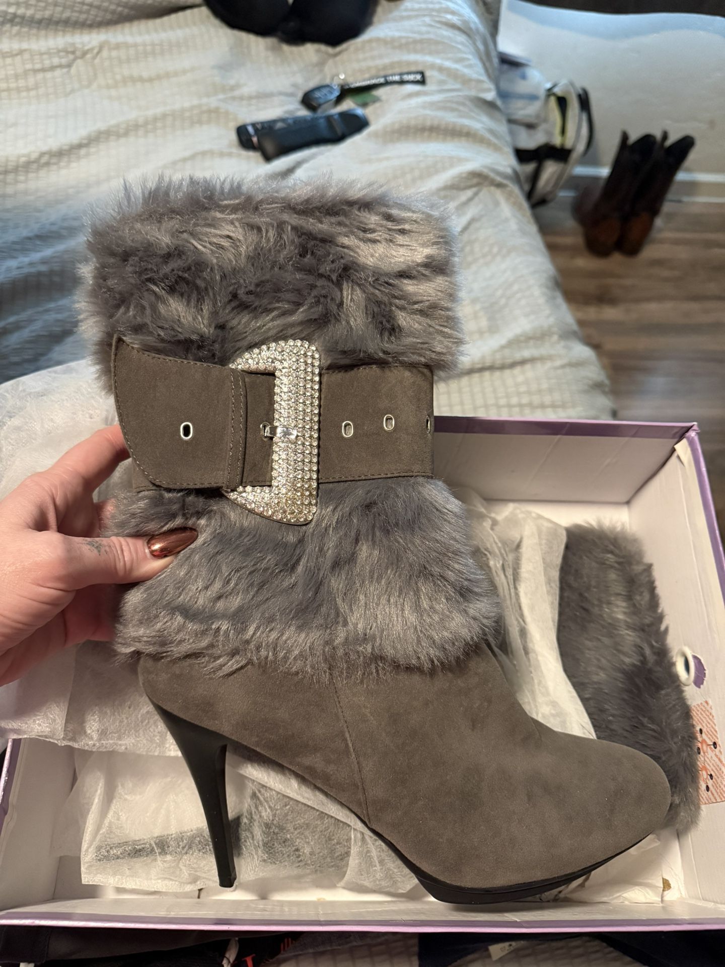 Excellent Condition Furry High Heel Boots Size 10