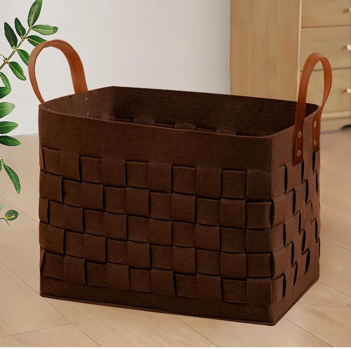 Large Rectangular Felt Fabric Blanket Basket Laundry Basket with Leather Handle - Brand New