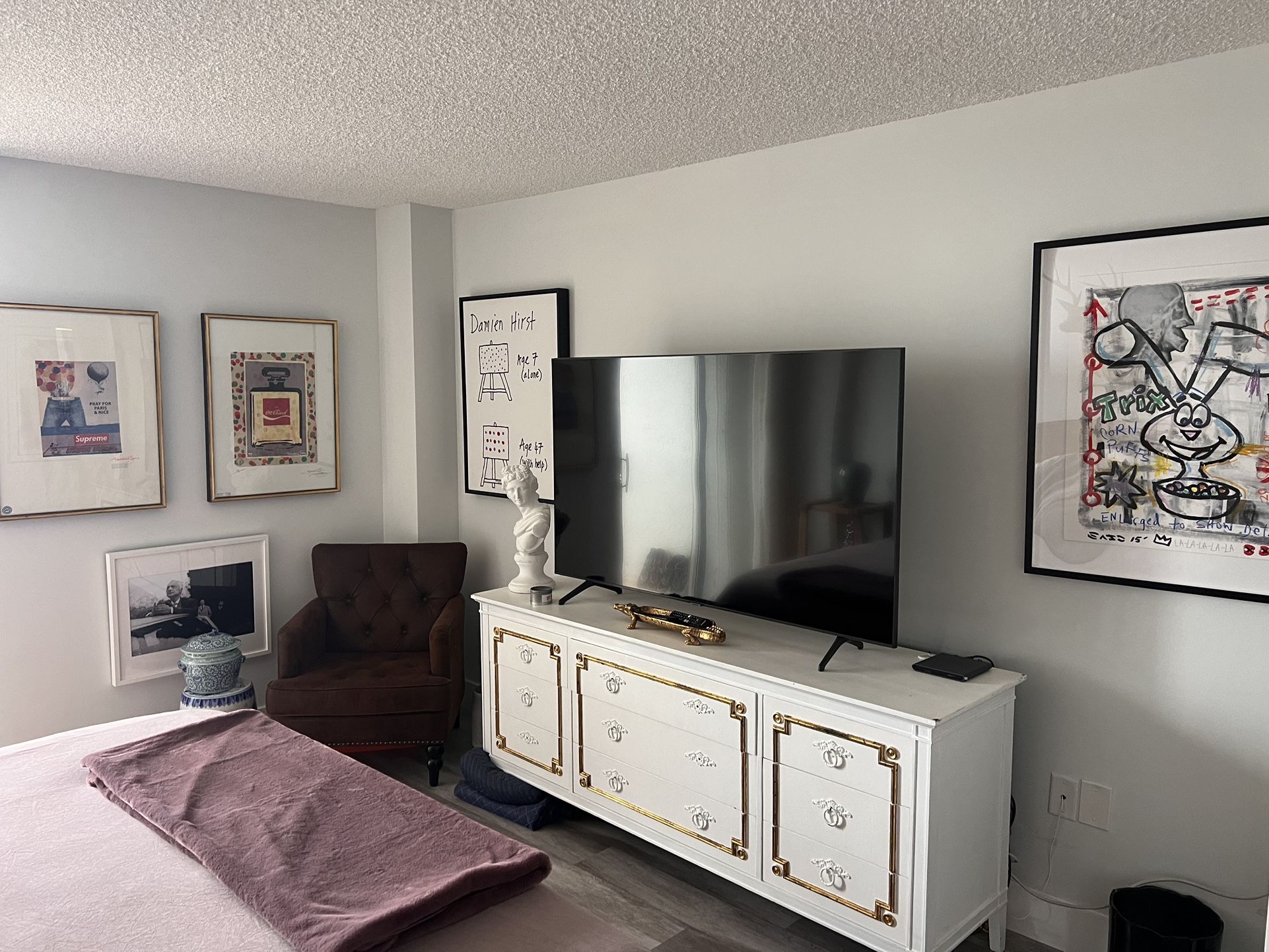 So this dresser is actually quite rare. It was designed and crafted by John Widdicomb from Grand Rapids, Michigan. This gent started building cabinets in 1858 before his sons took over- designers like George Nakashima famed architect and designer along with others are credited for several of the vintage pieces still alive to this day. The dresser is gorgeous but suffered some damage. One of the legs broke and the hardware popped off- but rest assured, I have all of them. For the “furniture flipper” and craftspeople out there- you know this is a cool find and rare piece. It’s solid wood. Has 6 medium drawers and 3 larger drawers with the official bronze plaque emblem on the inside of the top left drawer. I used this piece when I lived in Hollywood as set design and had it painted over a few times. With a little TLC this can be a stunning piece or catch a hefty price tag in the local market. Some of John Widdicomb’s dressers and furniture go for as high as $20,000. Hate to let it go- but rather it be in the hands of the inspired and open hearted. Dimensions: 76 inches long 32 inches tall 20 inches wide The TV above is 65 inches