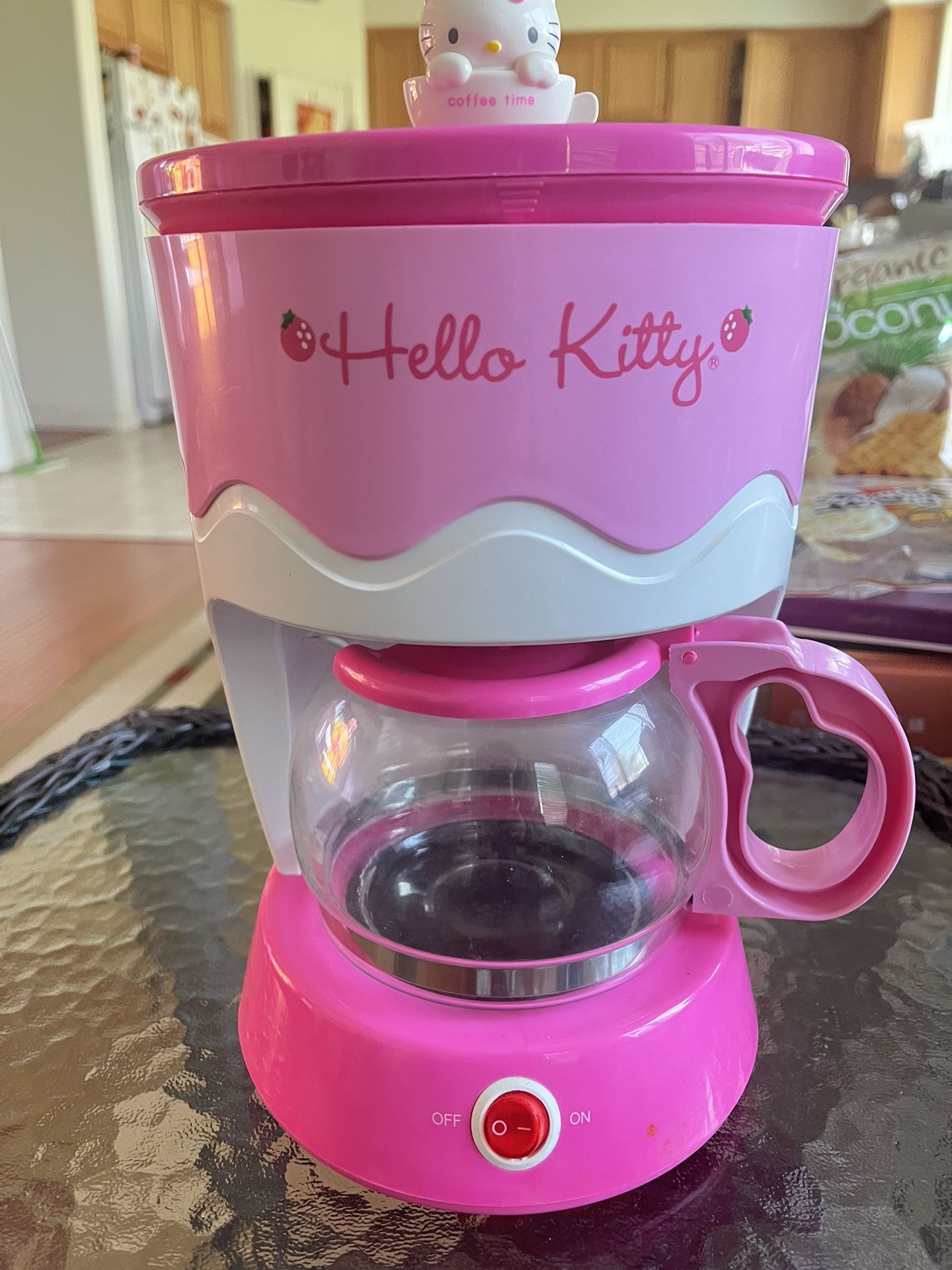 A gently used hello kitty coffee maker was gifted to us long time ago but we forgot about it in closet didn’t even use it once. Trying to let it go to someone who appreciates coffee and hello kitty. Location: Fontana