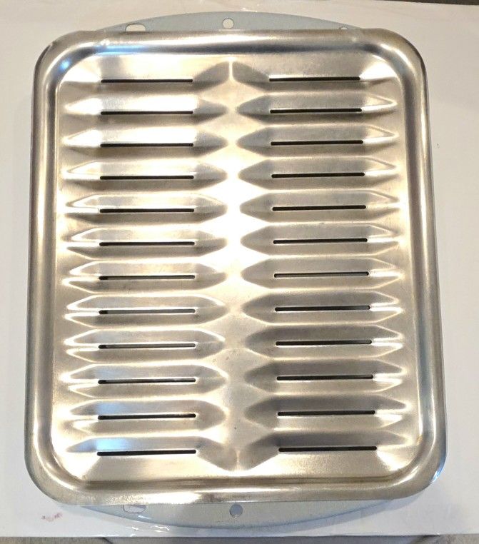 Vintage Aluminum Broiler Rack Classic vintage aluminum broiler pan insert. This is the top rack piece designed for healthy broiling—it allows fats and oils to drip away from your food while cooking. Great for steaks, burgers, or veggies. It’s much more durable than modern disposable pans and easier to clean than heavy cast iron . Exterior Dimensions: 12.75 inches x 8.5 inches Height: 0.5 inches to 0.75 inches. designed to fit inside a standard 13" x 9" baking or drip pan