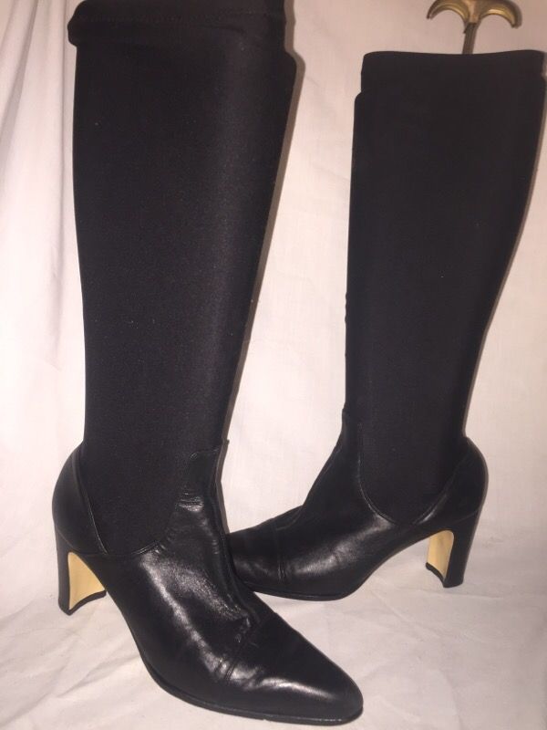 Phyllis Poland soft leather boots size 8.5 Top is strechey for fitted wear Very nice Heel 3 inches boot height 18 inches