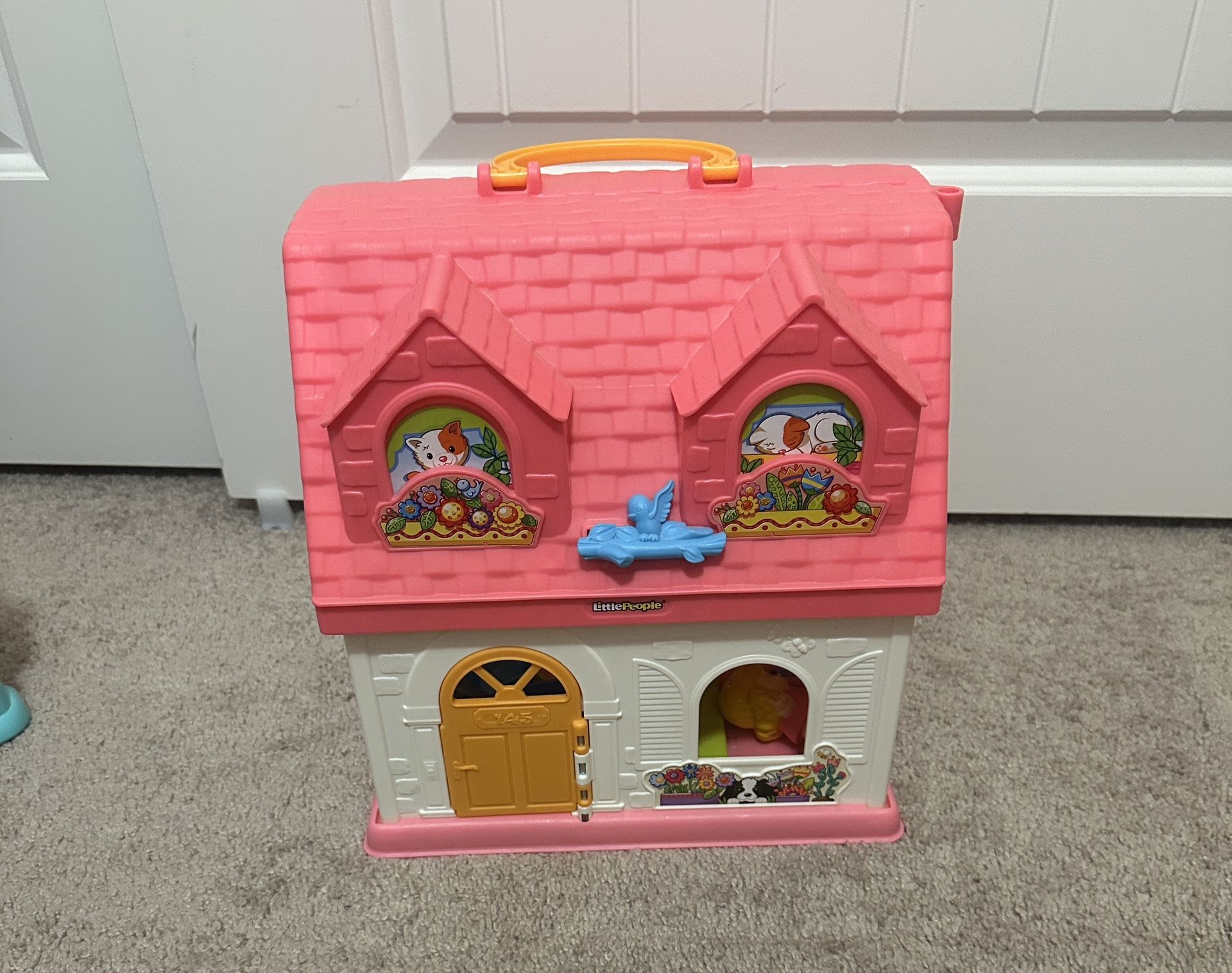 Delight your child with this vibrant dollhouse playset featuring a pink and white design. Includes multiple rooms and figures for endless imaginative play. All parts included. LIKE NEW. ALL SANITIZED