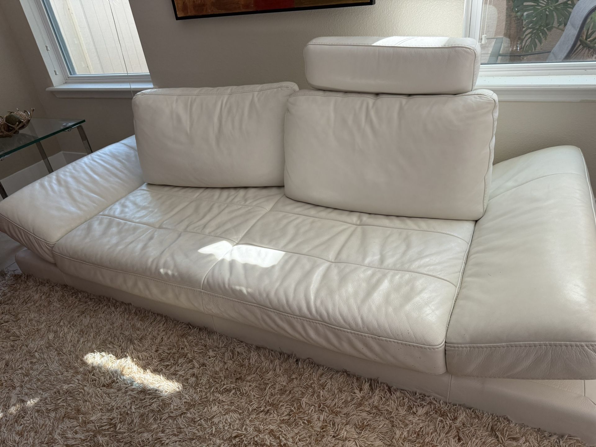 Contemporary White Italian Leather Low Slung Sofa