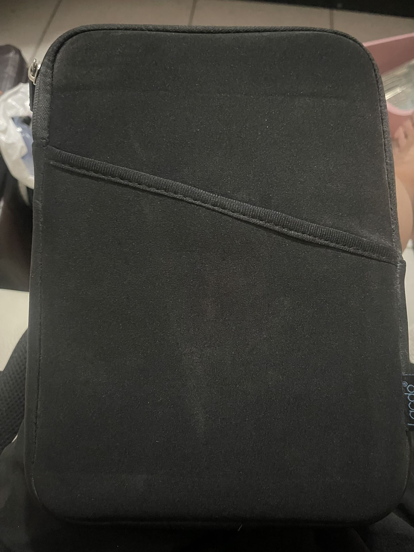 It is in great condition; it has a zipper and a pocket in the front. A very high quality tablet sleeve.