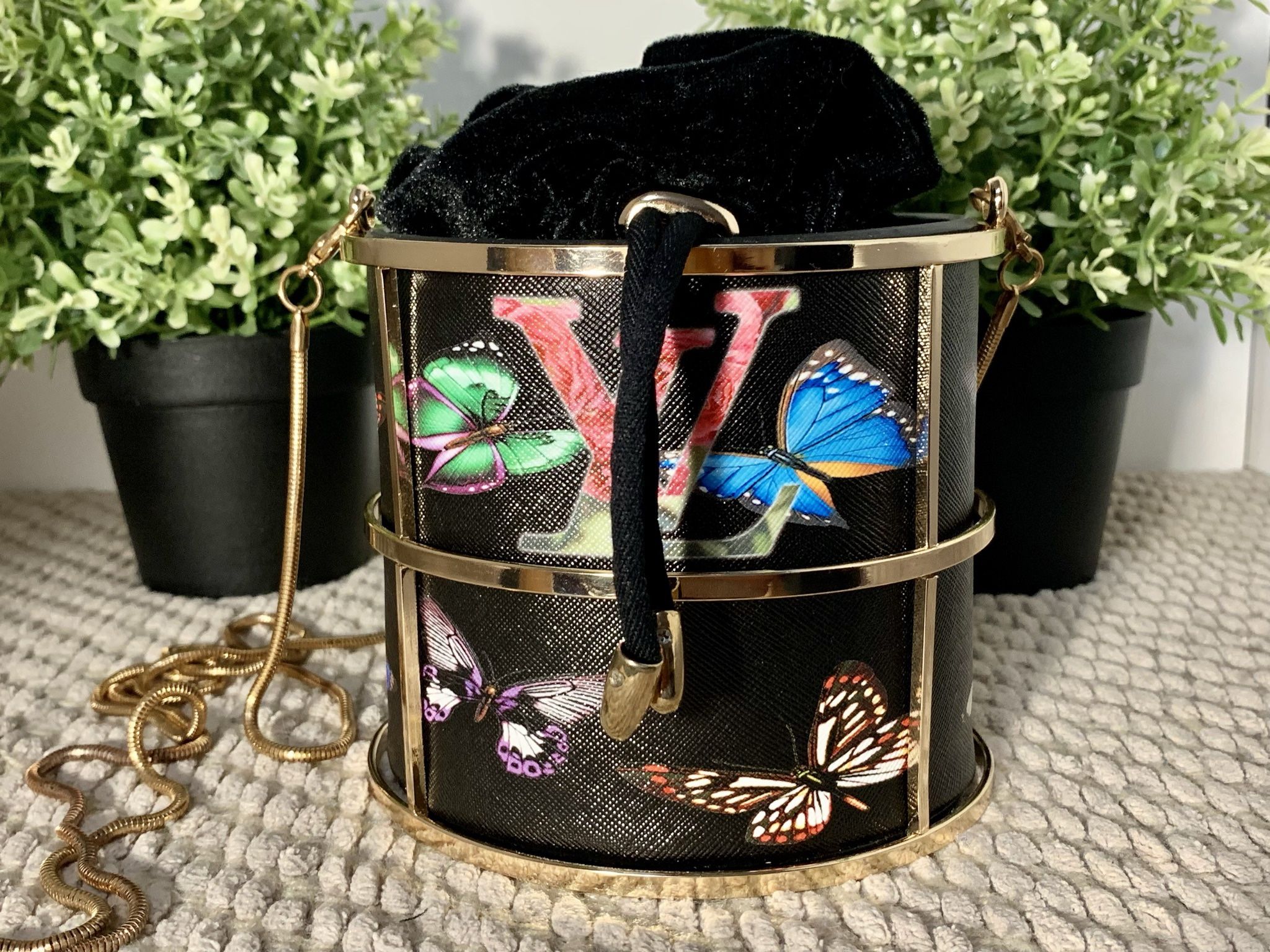 Bucket Cannes bag with black all cowhide leather and gold tone metal bracket. I haven’t seen anything like it. Very Vintage look. Selling it as it is. Add to your collections. It surely is a statement bag. My loss your gain. It still has an attached tag. Any cellphone could fit. Color and size may appear different from photos. Do not hesitate to ask. Some Signs of usage and age maybe present such as markings, scratches, dents and discoloration. PRICE IS FIRM. ITEM IS AS-IS. NO RETURN NO EXCHANGE unless you’ve received the wrong item.