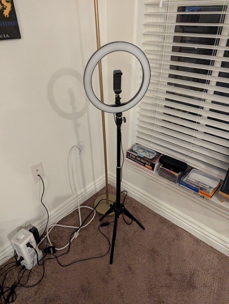 No box, adjustable height 10" light ring, different levels of brightness, USB connection, used only 3 times, like new