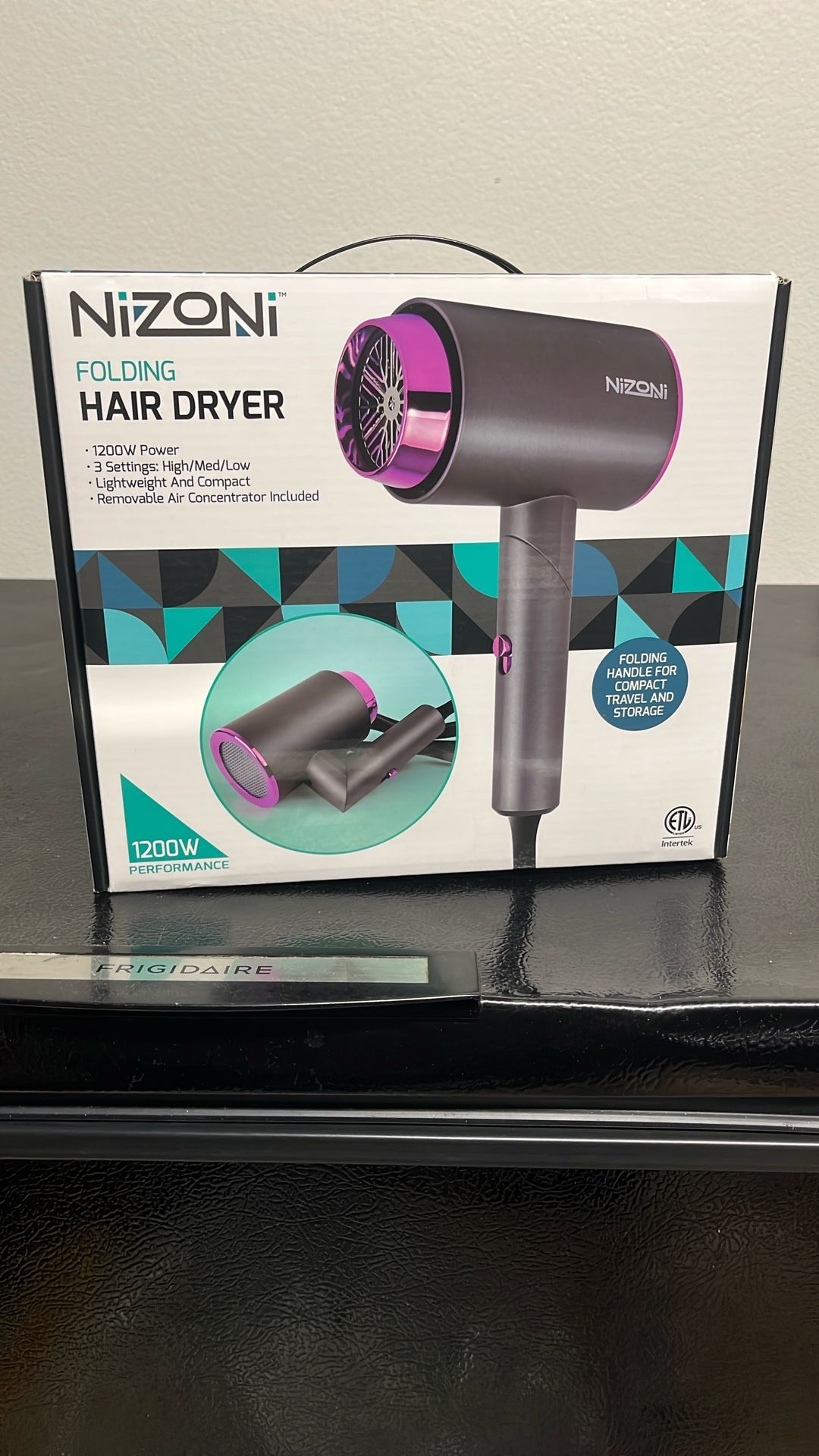 Holding hairdryer three settings, brand new condition