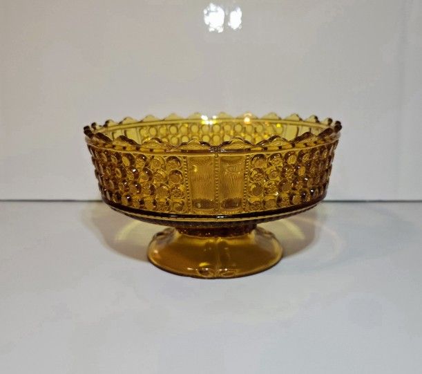 Bring home a vibrant piece of antique glassware with this Richards and Hartley Co. Footed 3-panel glass bowl coming in deep amber-yellow. Produced in the U.S.A. circa 1885, it measures approximately 7.25" in diameter at the rim, 4.25" in diameter at the base and 4" tall. It weighs approximately 31 oz. This bowl is pre-owned in good condition. There is slight damage and signs of age, such as scratches, a small chip on the base foot, flea-bites, etc. Please see all of the photos, I'd be happy to send more if needed. It comes from a smoke-free home and does not come with any original packaging. Always shipped with care, tracking, and insurance, usually within 1-3 business days. Feel free to reach out with any questions. The glassware in the photos is the exact item you are purchasing. I also consider every offer, so please don't hesitate to send them. Please check out the rest of my store, I have a little bit of everything for everyone. Thank you so much for looking!