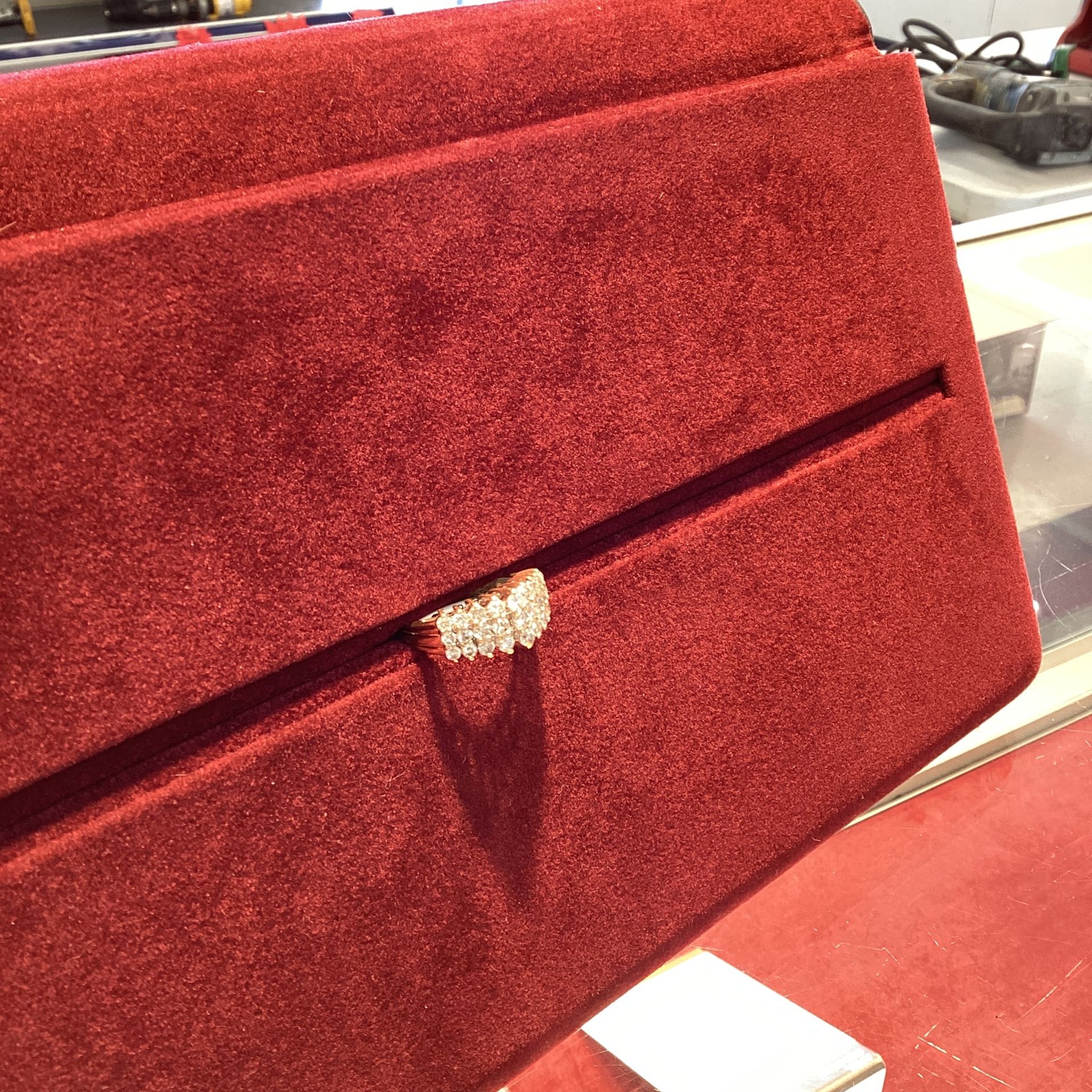 This beautiful 14k yellow gold ring is for sale or layaway for 1000.00 or a min of 100.00 for layaway 18 natural brilliant diamonds. Come down and take a look today located at our CASH AMERICAN PAWN location off noland rd in independence Missouri