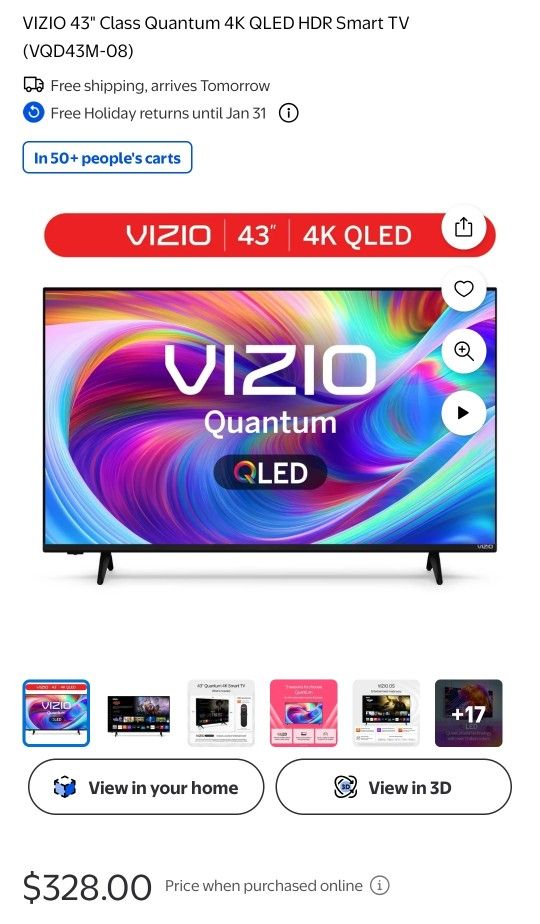 43in Vizio QLED Smart TV. NEW