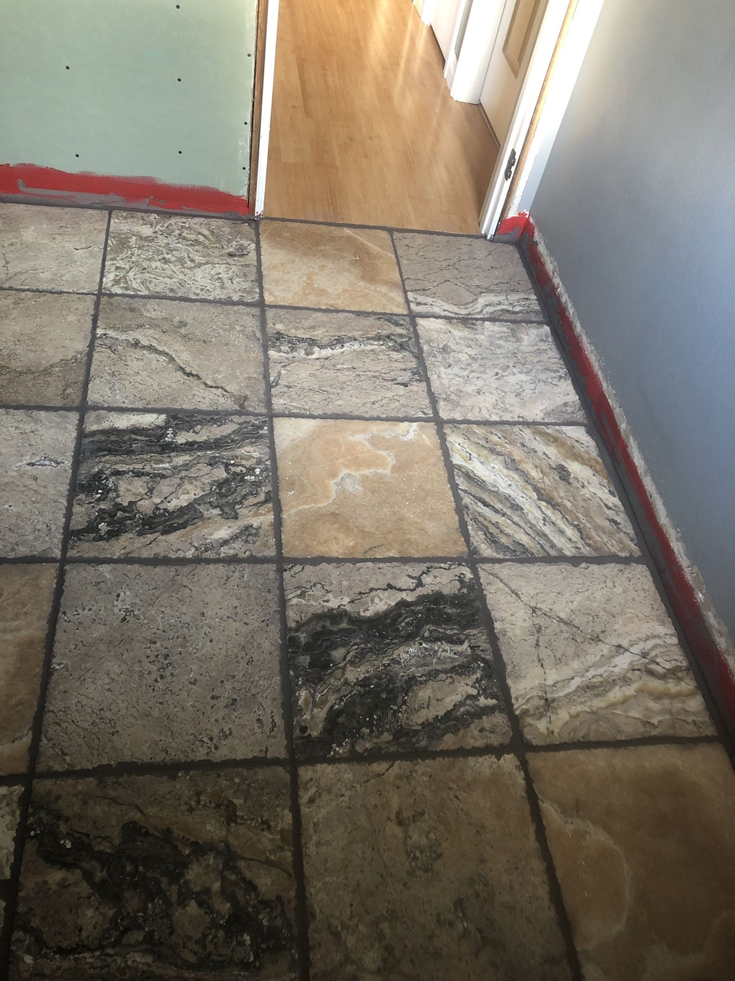 Leftover tiles 16 x16. Beautiful high end tiles which normally sell for $12 each. They are offered here for $5 each. There are about a dozen and a few are cracked. Cracked pieces have a large area which can still be utilized. Cracked pieces are free; must take all.