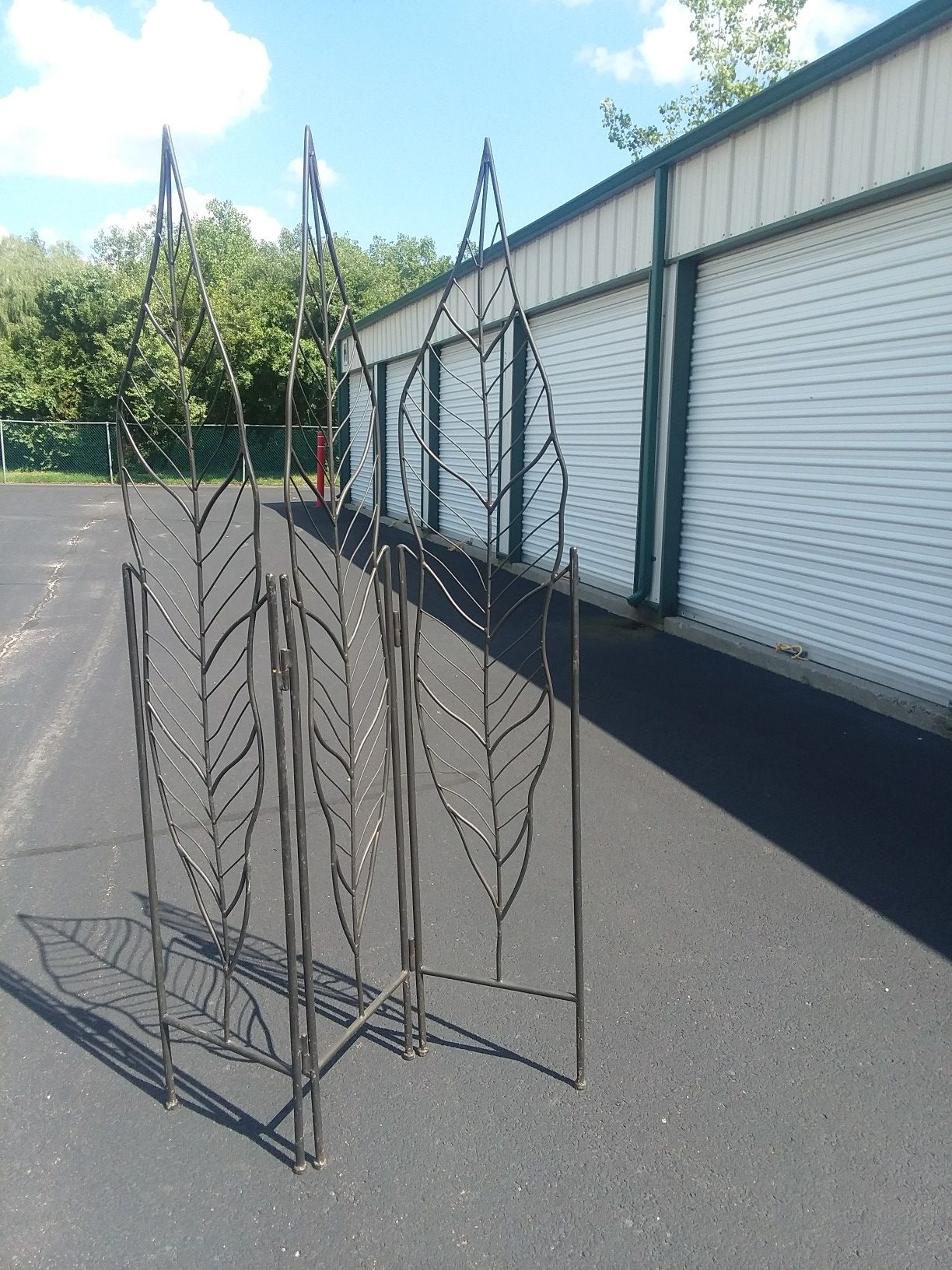 Beautiful piece! Chocolate brown wrought iron space divider, 3 leaves, exotic looking! Folds up as well!