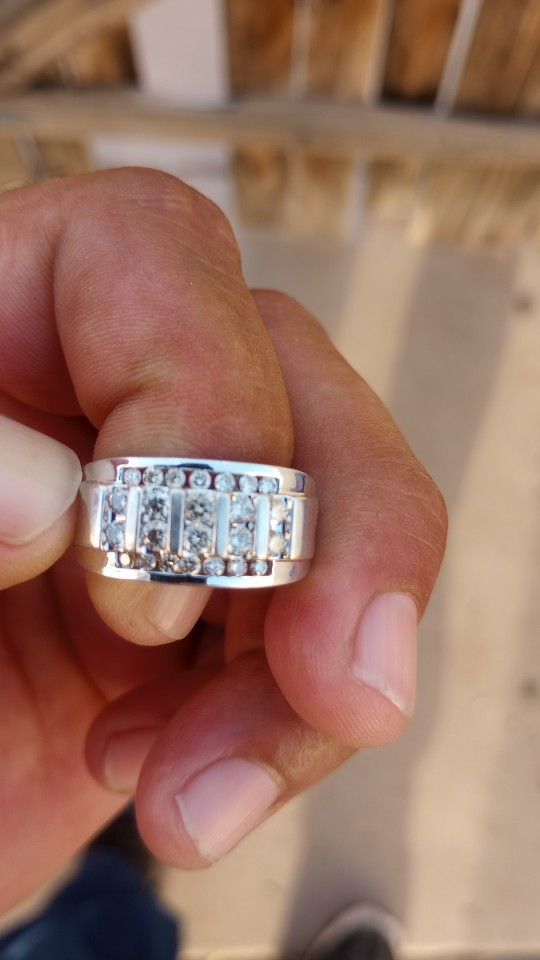 This 1ctw. Was bought over 5 years ago from Daniel's jeweler's... Very high quality clear stones. No paperwork. But can be tooken and tested to prove it is real. I paid over $5k for this ring. A total of 24 stones. Asking price is negotiable with in reason. Please no endless questions. I'm not hurting for money nor am I in a rush to get rid of this.