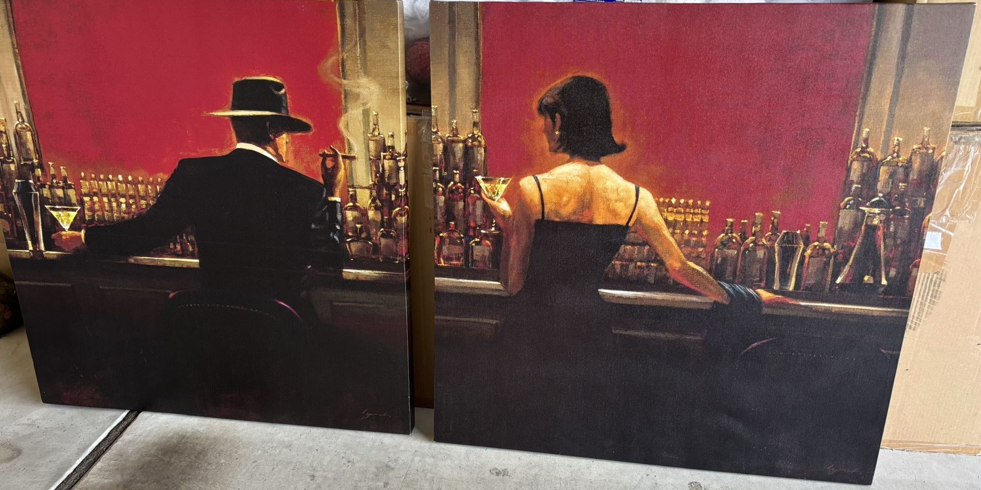 Nostalgia and Martini 2 piece canvas set. 32” x 32”. In great condition!