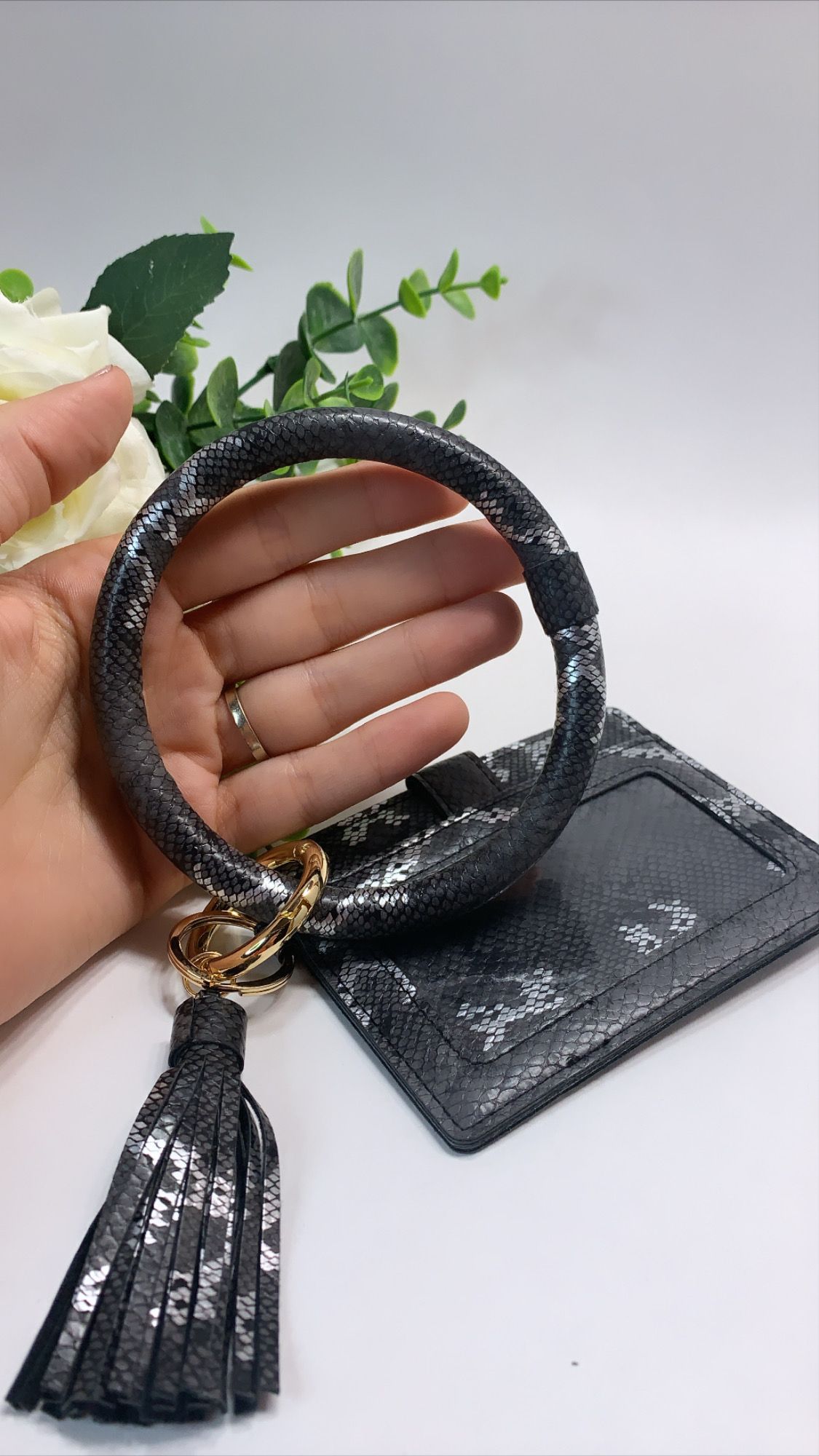 High Quality PU Leather Keychain Wallet/Card Holder Big Circle, Black and White