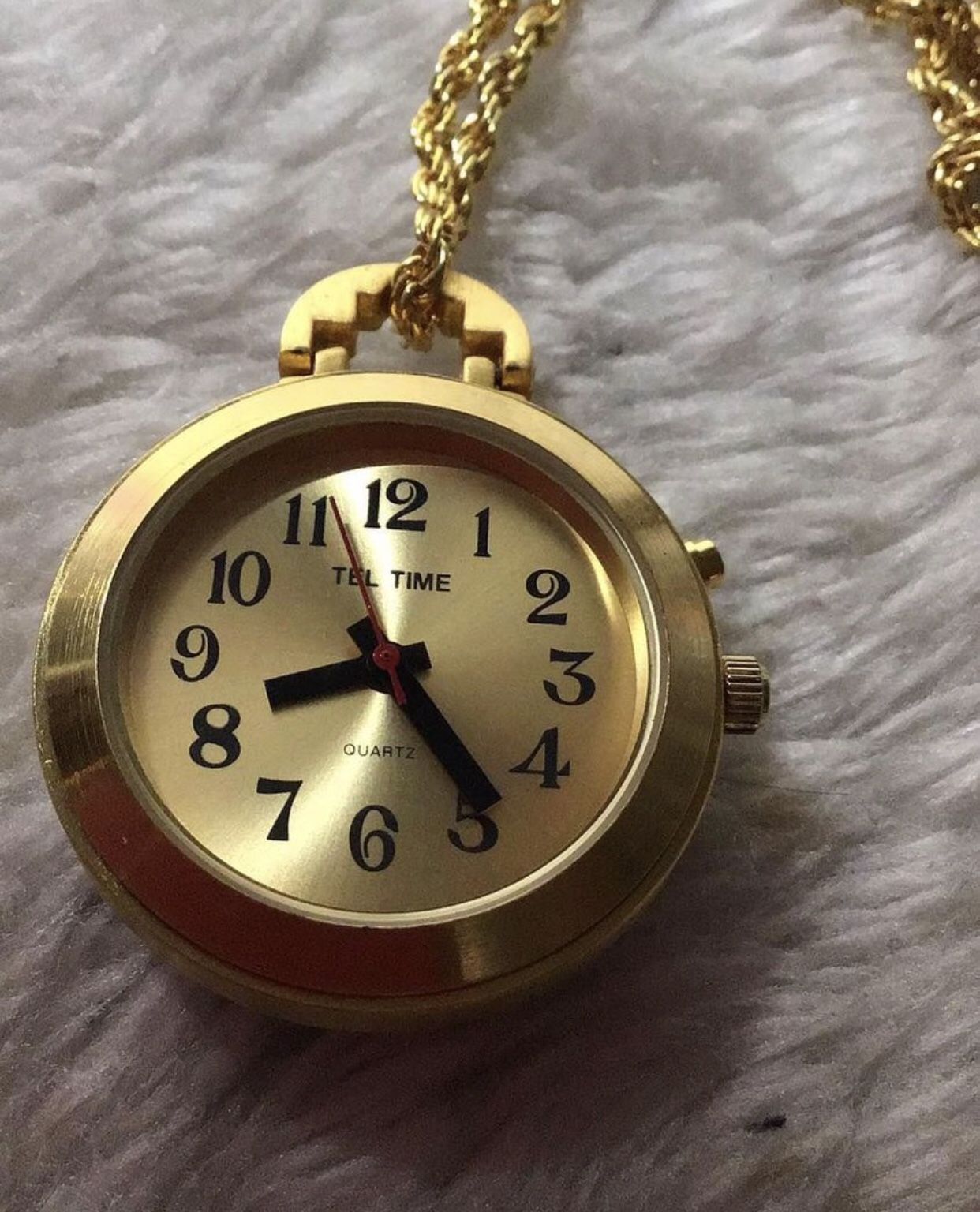 QUARTZ TEL TIME GOLD TONE PENDANT WATCH ANNOUNCES THE TIME IN CLEAR VOICE 27 L