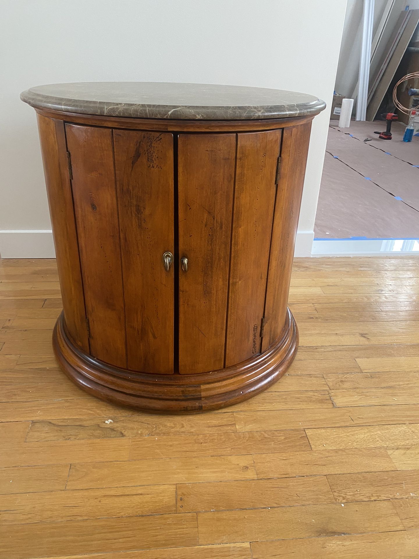 Round Coffee End Table With Marble Top And Storage Cabinet