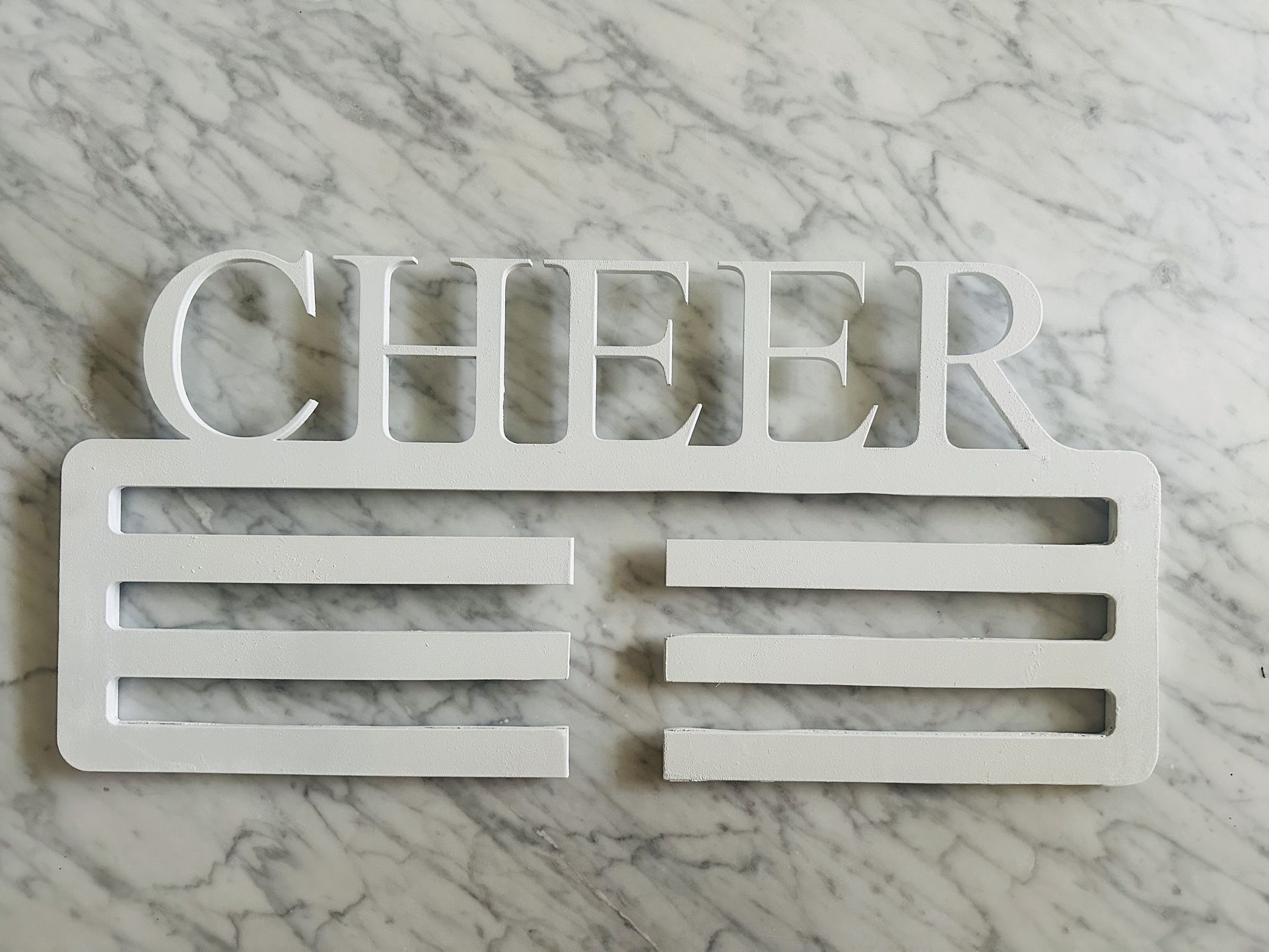 White Cheer sign to hang medals
