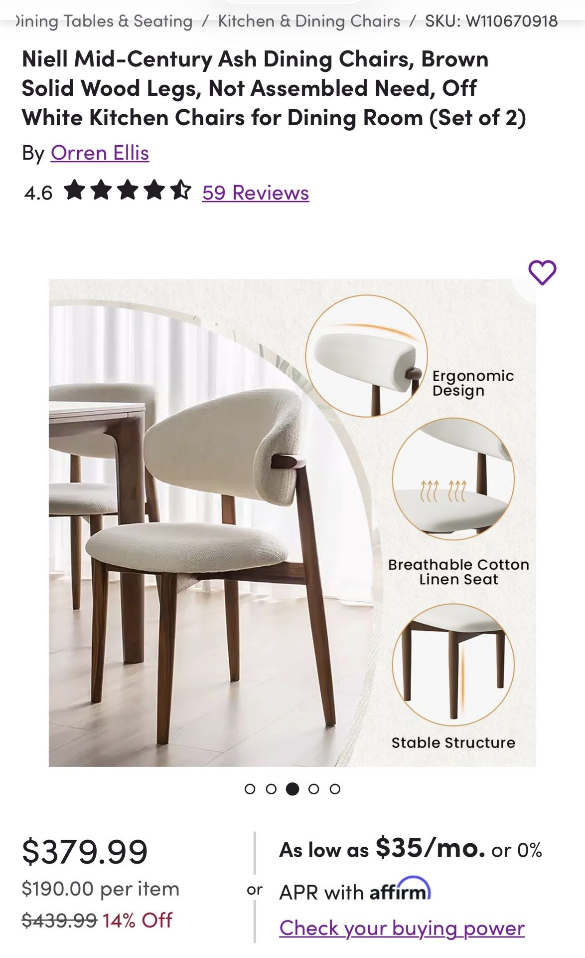This is a set of two chairs bought from Wayfair. Brand new. Never used. Still has packing protection on them.