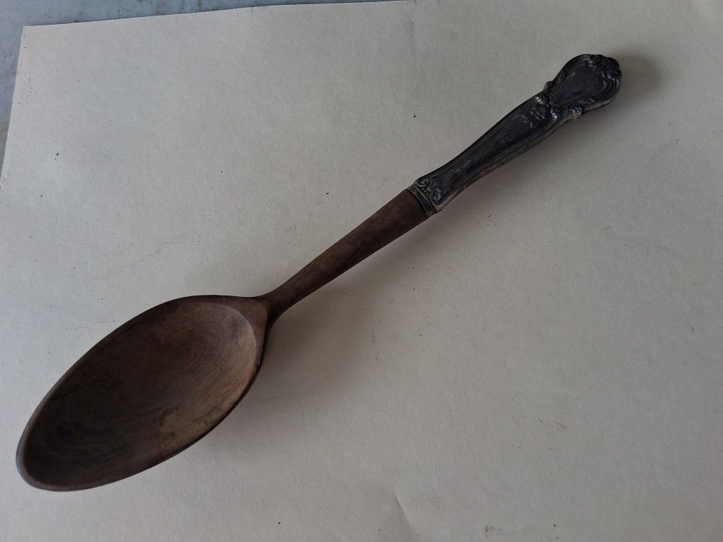 Wood vintage spoon with sterling handle 10 inches. Selling for very good price