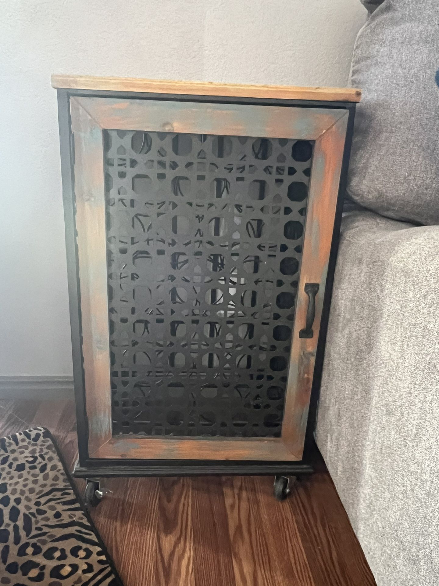 Holds wine or other bottles. Door opens, has wheels. Must be picked up in washington.