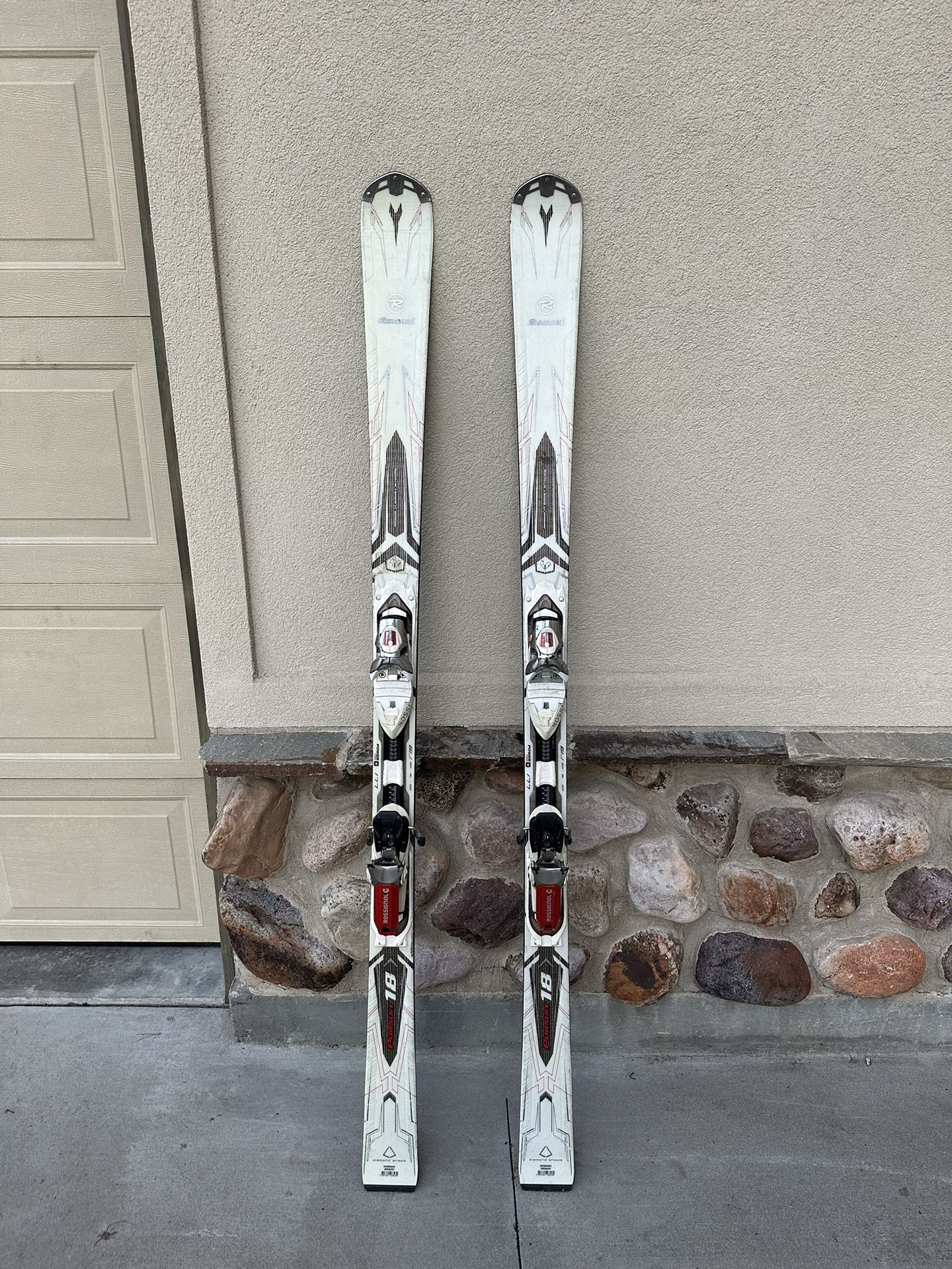 177 Skis with bindings Extremely fast ski Designed with powerturn Rocker and H-Structure technologies that combine with an Oversize Sidecut to give you amazing hard snow performance and stability, while the subtle tip rocker makes directional changes lightning fast. The skis have been used but the bottoms are in good condition
