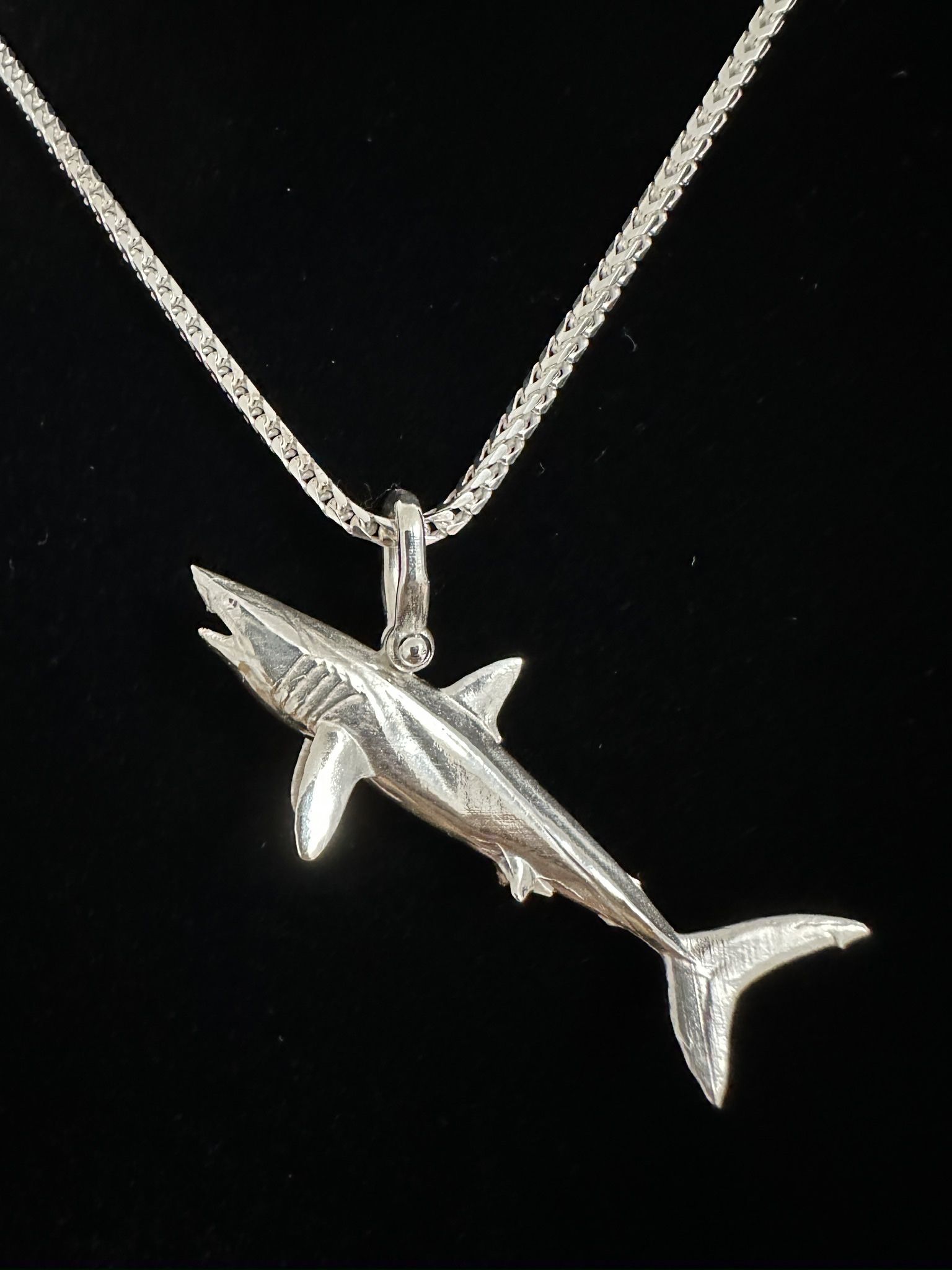 3D solid 925 Sterling silver Mako Shark Pendant. $350 pendant only $450 pendant + Franco chain any length you want.
