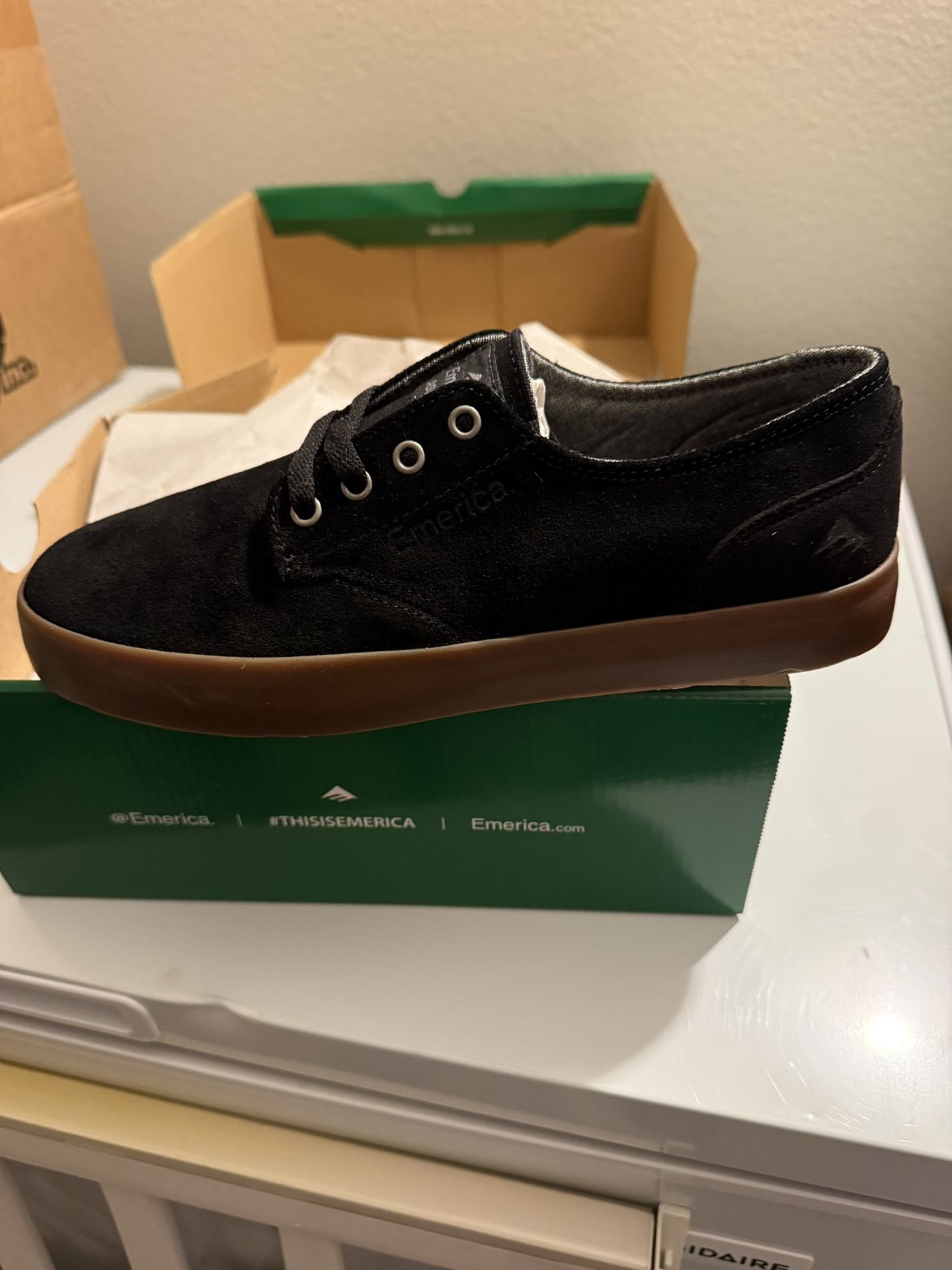 Youth size 7, brand new in box. Black/gum sole.