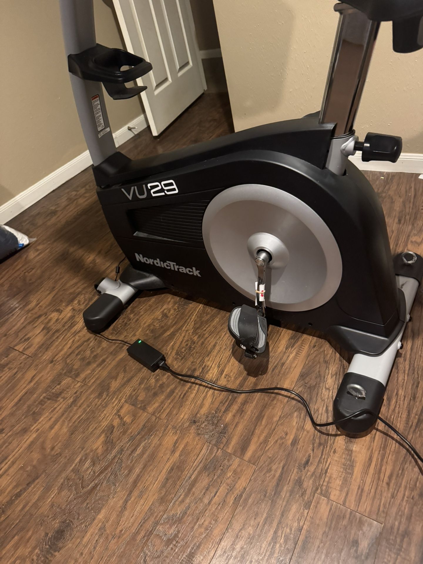 Great stationary bicycle! I got it 6 months ago but recently got a gym membership so it is no longer needed. Compact enough to fit in most areas. Retails for around $800! My dog got a little hungry so one of the pedal straps is chewed 😵💫🫣 but still works beautifully! Perfect for New Year’s resolutions! An upright bike designed for comfort, support and performance, the VU 29 keeps your workouts engaging! 24 Digital Resistance Levels. A wide range of resistance levels delivers every type of intensity you need, from recovery sessions to heart-pounding workouts.