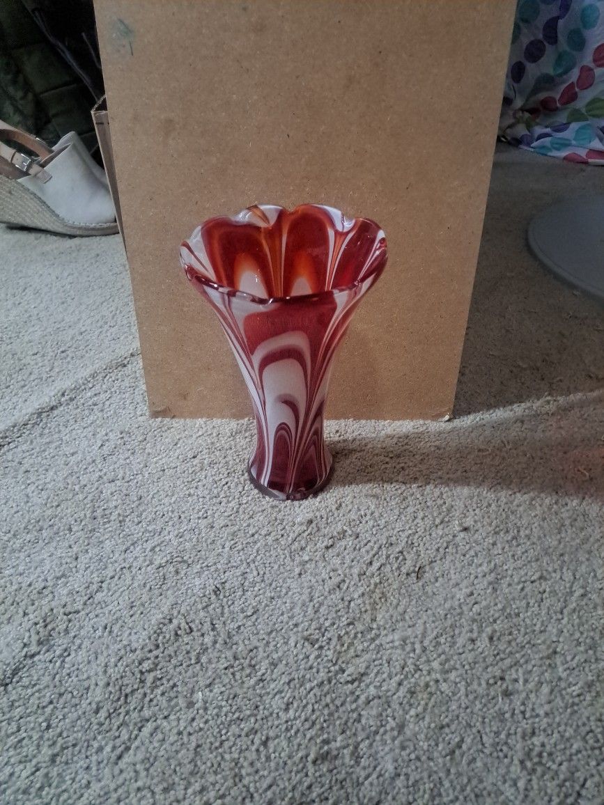 Red & White Art Glass Vase, Drape Drapery Design, Mid-Century Modern, hand blown glass, scalloped or ruffled top edge, Made in the 1960's or 1970's, Height 9 3/4" No glass chips, and in excellent shape. Very eye catching, great for your table, or your glass collection. $30.00 Cash Only!!!
