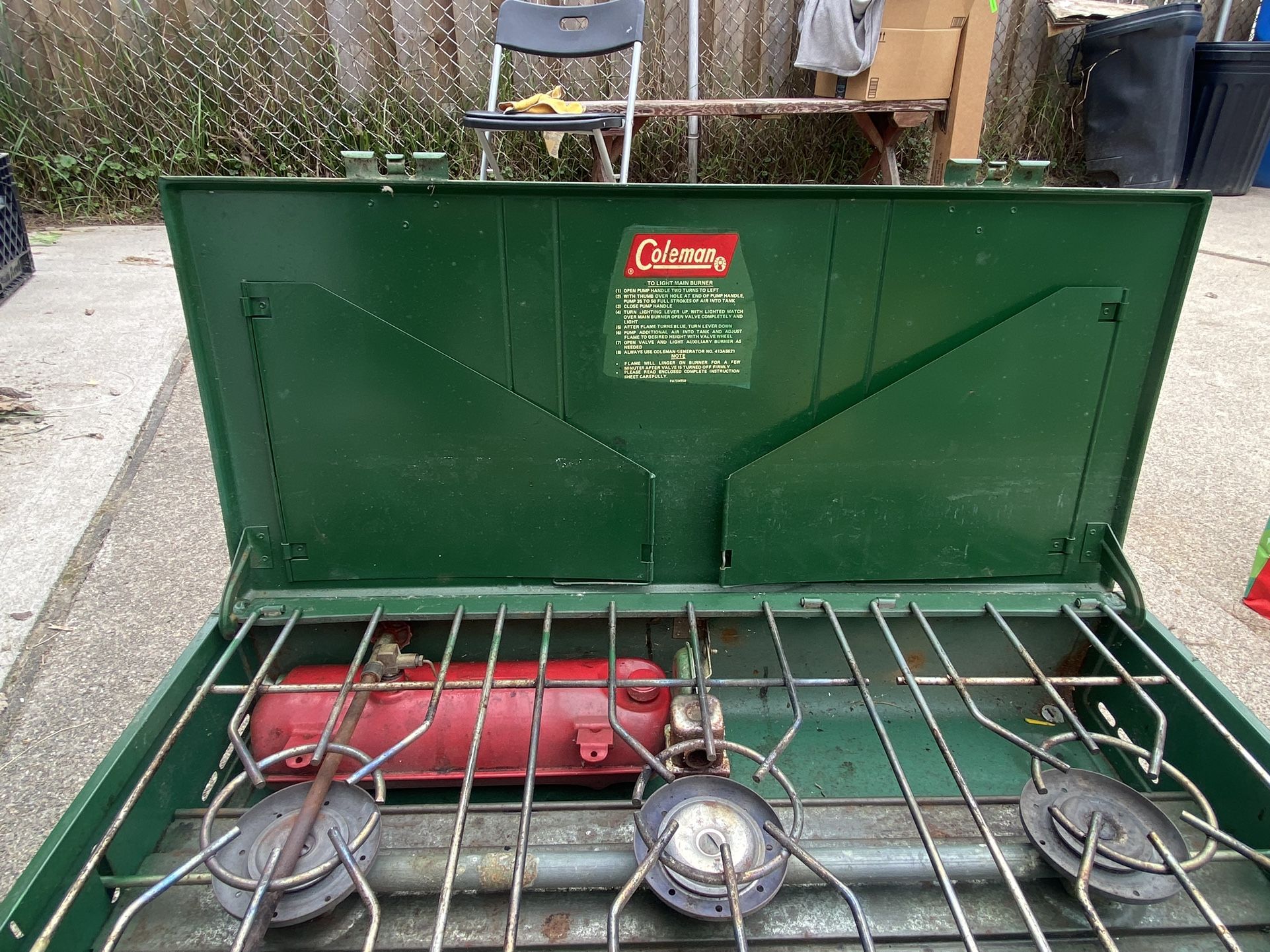Coleman propane stove. I don’t know how old it is or if it works. It was used plenty of times on hunting trips.