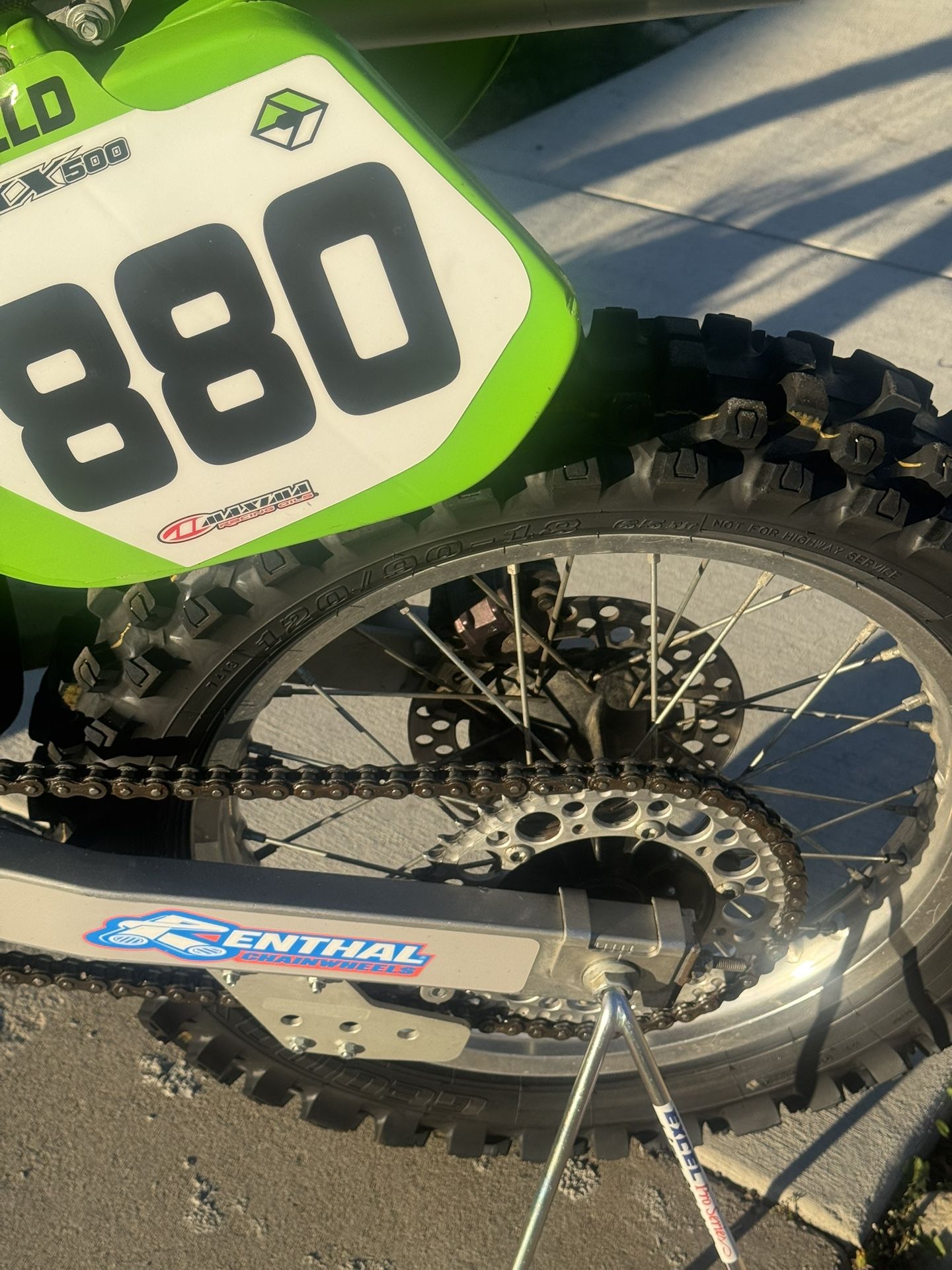 Veteran owned stock KX 500. Rebuilt shocks and forks. New tires and tubes. Pro taper bars. New seat and cover. New graphics. Never raced but is race ready.