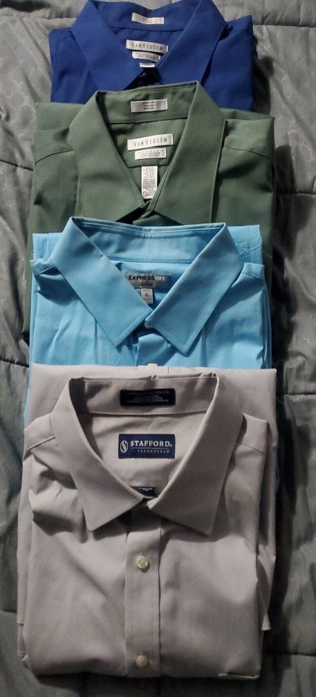 Dress shirts are basically new. Only wore once,lost weight and now to baggie on me. Sizes are in the picture. $10 each