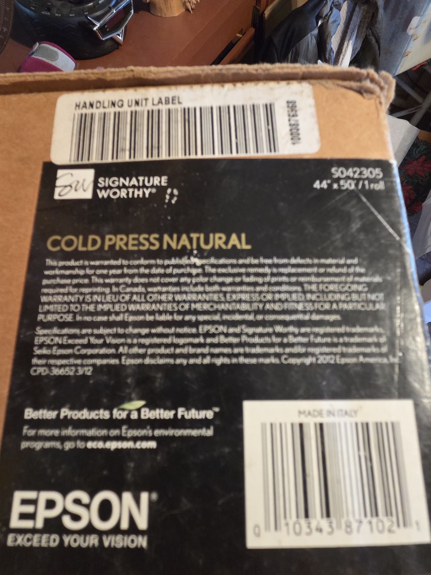 44x50 inch roll of Epson cold press natural printing paper 100%Cotton rag acid free,19mill,340gsm Great for reproduction photos gallery print Prints in deep vibrant colors This is top notch archival paper and expensive buying it retail So my loss your deal!! I let it go for $150 only a small pice was taken of the roll