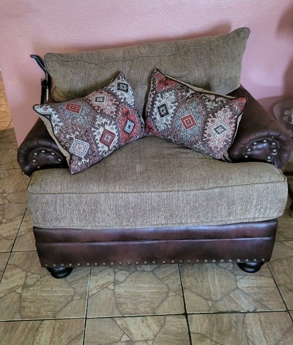 Living Room Set Leather & cloth sofa, love seat And chair . Willing to negotiate on the price.