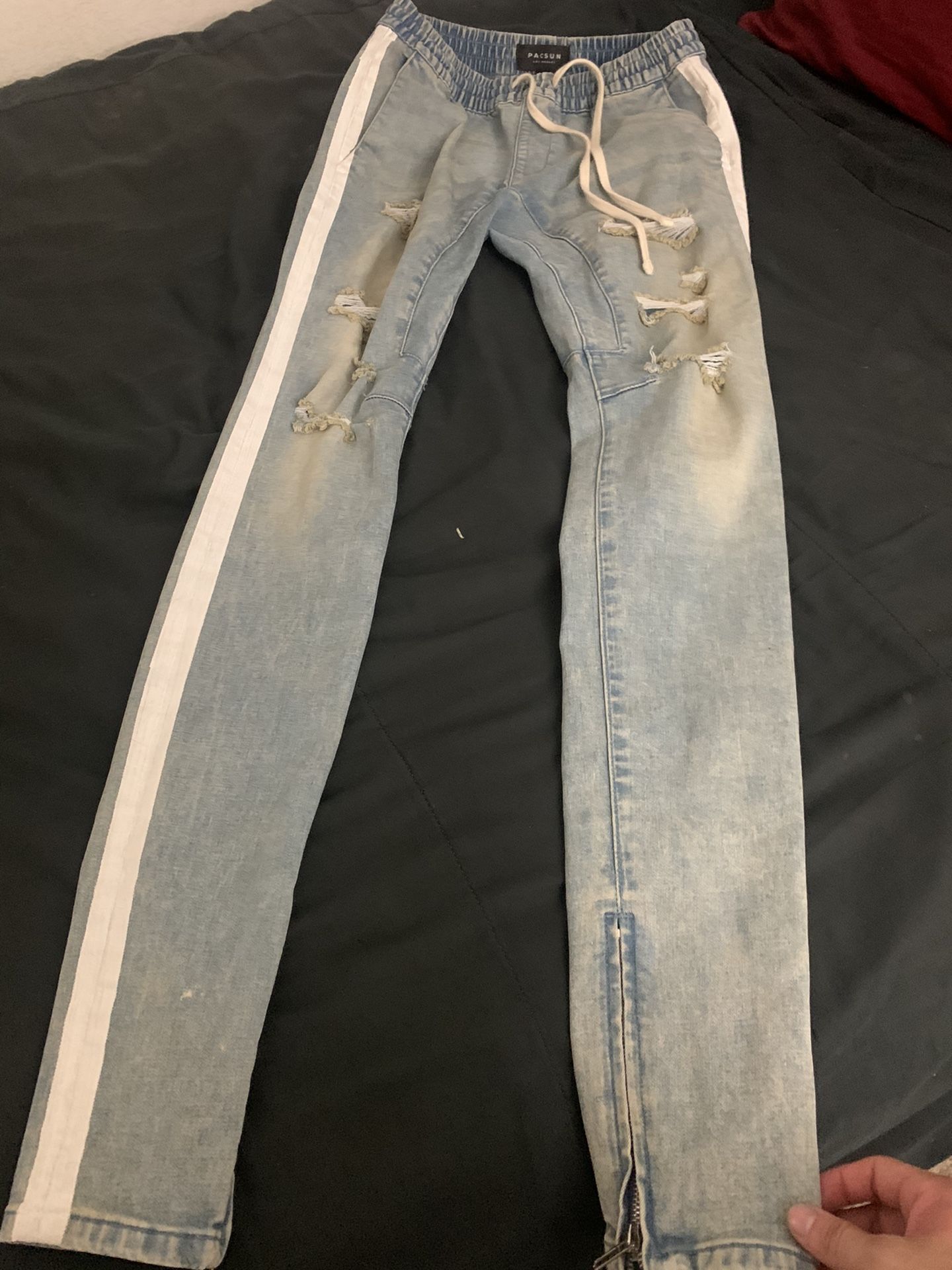 Stacked skinny Joggers with zipper Tapered at the bottom with white stripe on the sides from PacSun Size small lmk