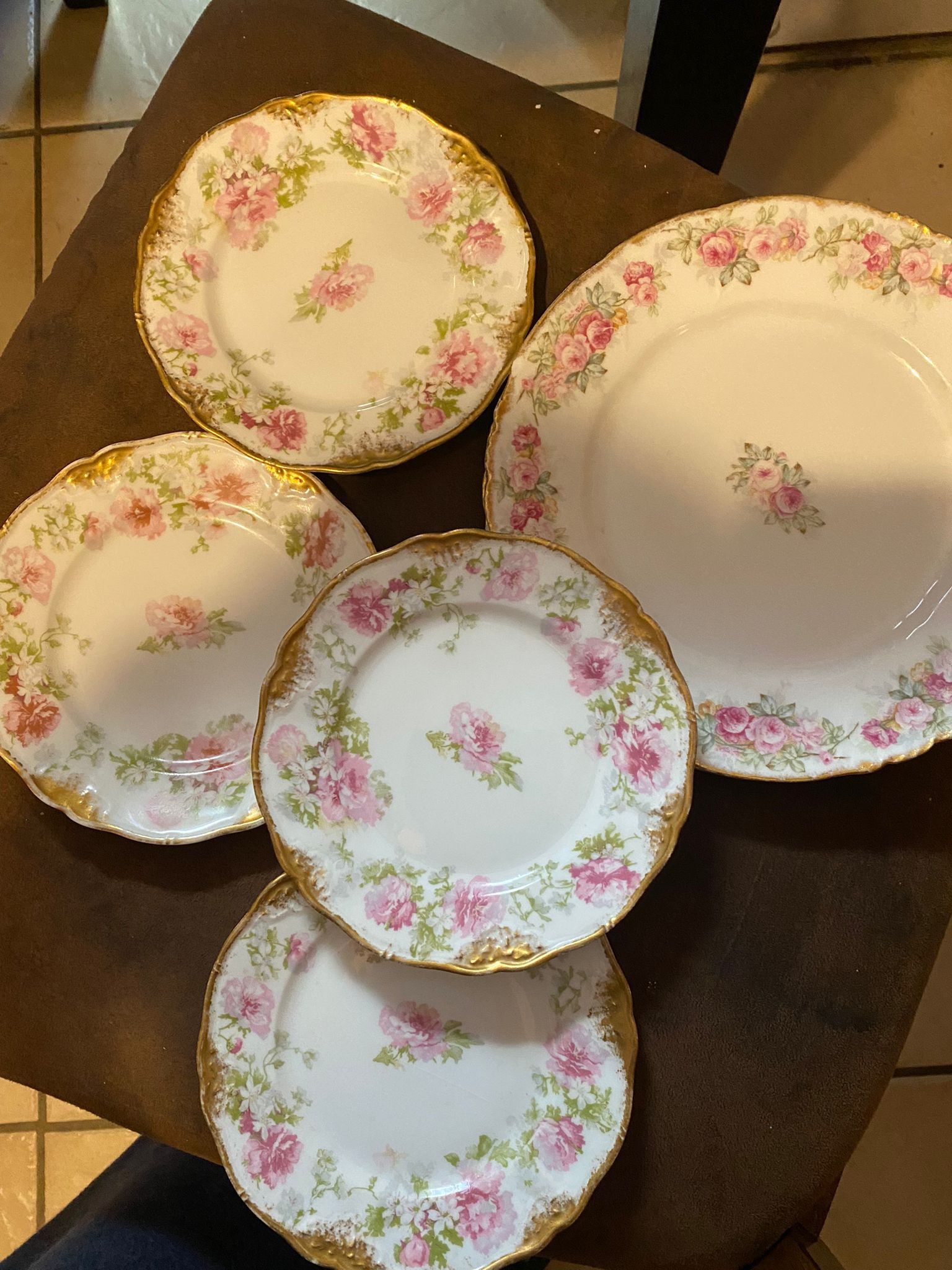 Vintage Elite Works Limoges France Higgins & Seiter Pink Roses Gold Rim 5 Bowl Set plates check pictures and any questions ask