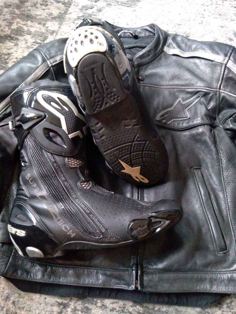 BOOTS SOLD Nice motorcycle track gear. Alpinestars leather jacket size medium with shoulder elbow and back armor Alpinestars supertech riding boots 9.5