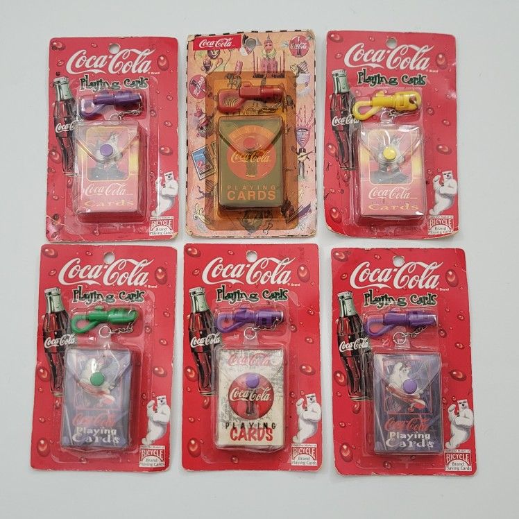 Lot of 6 Coca-Cola Mini Playing Cards on Key Chain Collectible 1999 New!