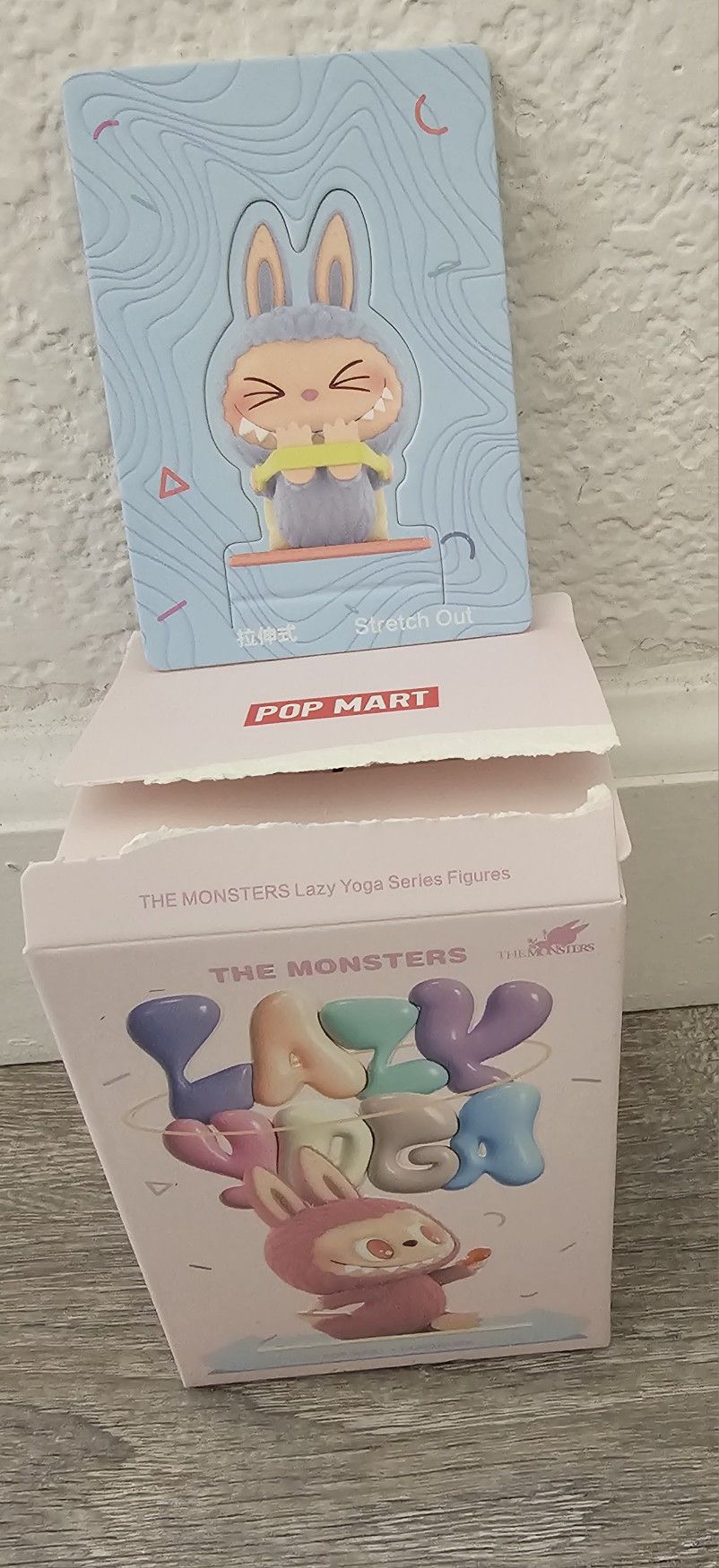 Authentic Pop Mart Labubu The Monsters Lazy Yoga Series Vinyl Figure (Stretch Out)! Brand new box has only been opened to confirm version, bag with vinyl figure is sealed. I HAVE 2 AVAILABLE!! Comes with bag with vinyl figure (sealed), box (opened), and collector card. 100% Genuine / Authentic SERIOUS INQUIRIES ONLY!! Comes from smoke a free home. Thanks for looking!!