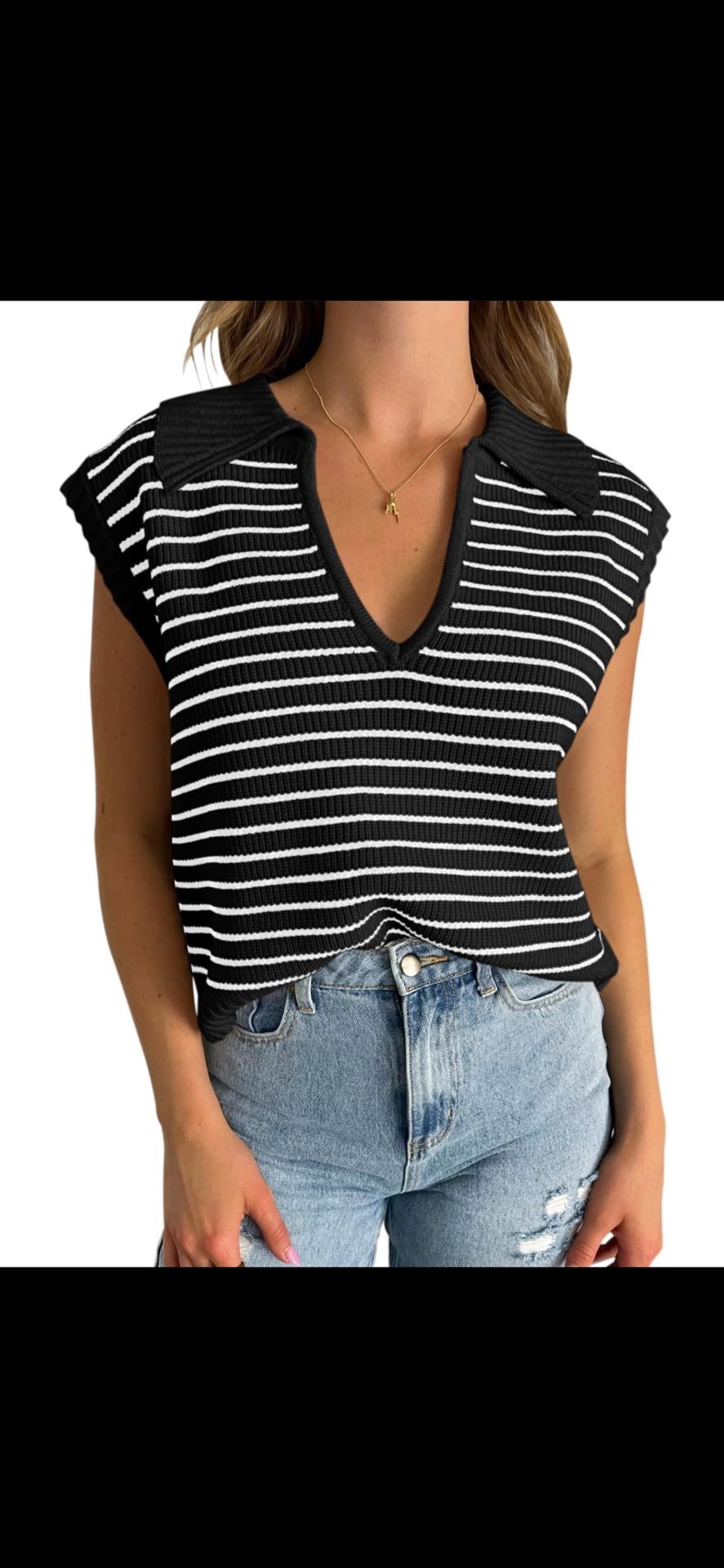 Yousify Sleeveless Tops For Women Casual Summer Spring Striped Sweater Vest Cap Sleeve Clothes Black L