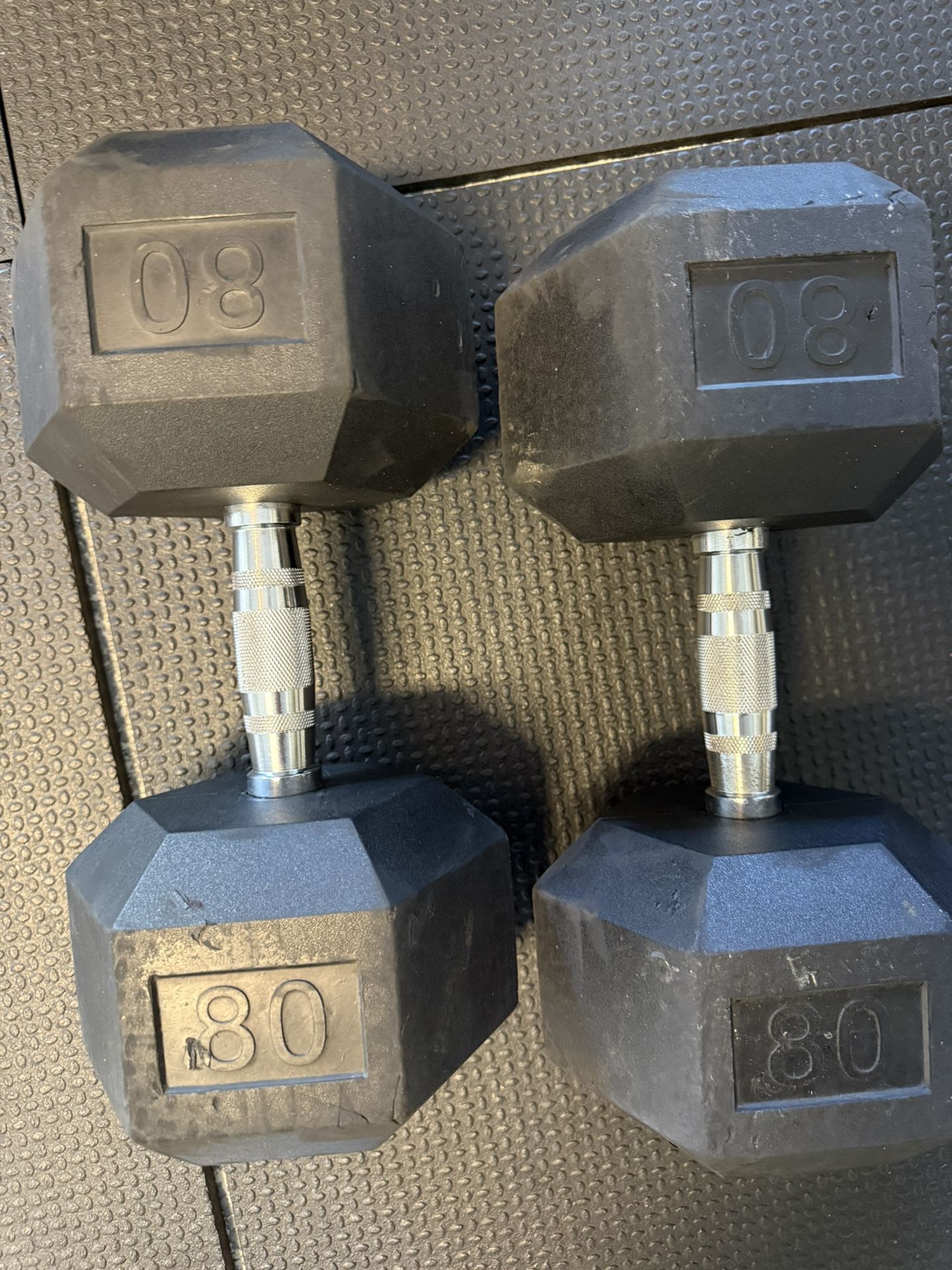 80 Pound Rubber Hex Dumbbell Pair